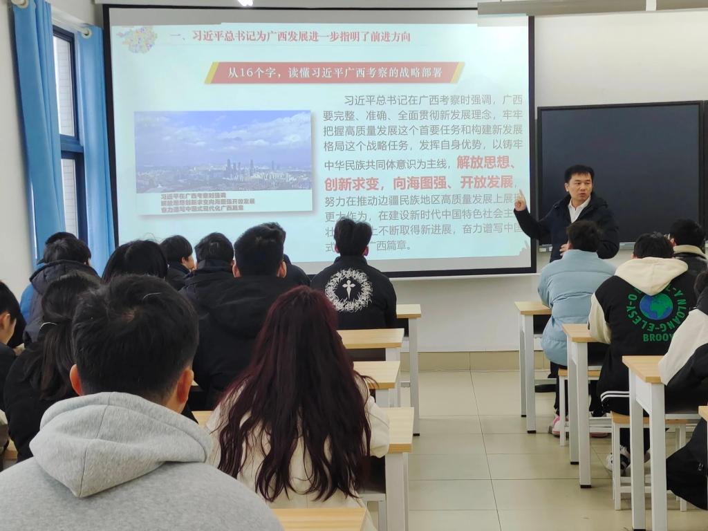 (路桥讯)为深入学习贯彻习近平新时代中国特色社会主义思想、党的二十大精神及习近平总书记对广西重大方略要求,引导同学们树立新学年、新学期的新奋斗目标,推动学风建设,根据学校的统一部署,2月26-27日,学院举行2024年春季“开学第一课”主题教育活动。学院领导及各辅导员老师通过线上及线下方式深入各班开展主题活动。