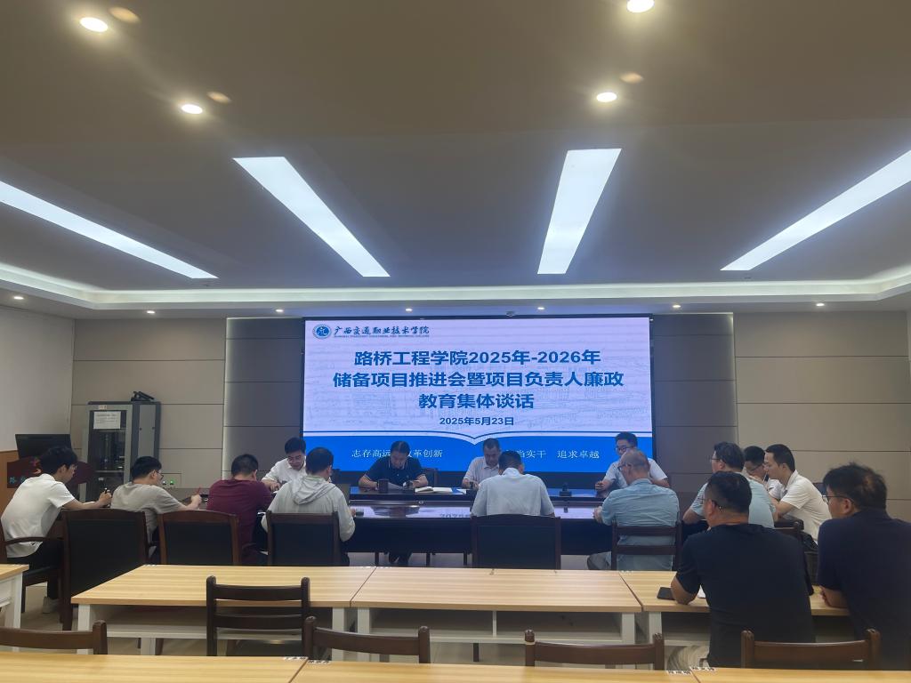 (路桥讯)5月23日,路桥工程学院召开2025年-2026年储备项目推进会暨项目负责人廉政教育集体谈话,路桥工程学院领导班子、各项目负责人及相关教职工参加会议。