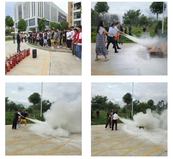 应急疏散演练后,黄文佳、武新舒两位老师又为师生们科普灭火知识,并演示灭火器的规范使用步骤。在实操环节中,师生分组上阵,真正将理论知识转化为实战能力,实现了从学习到实践的跨越。