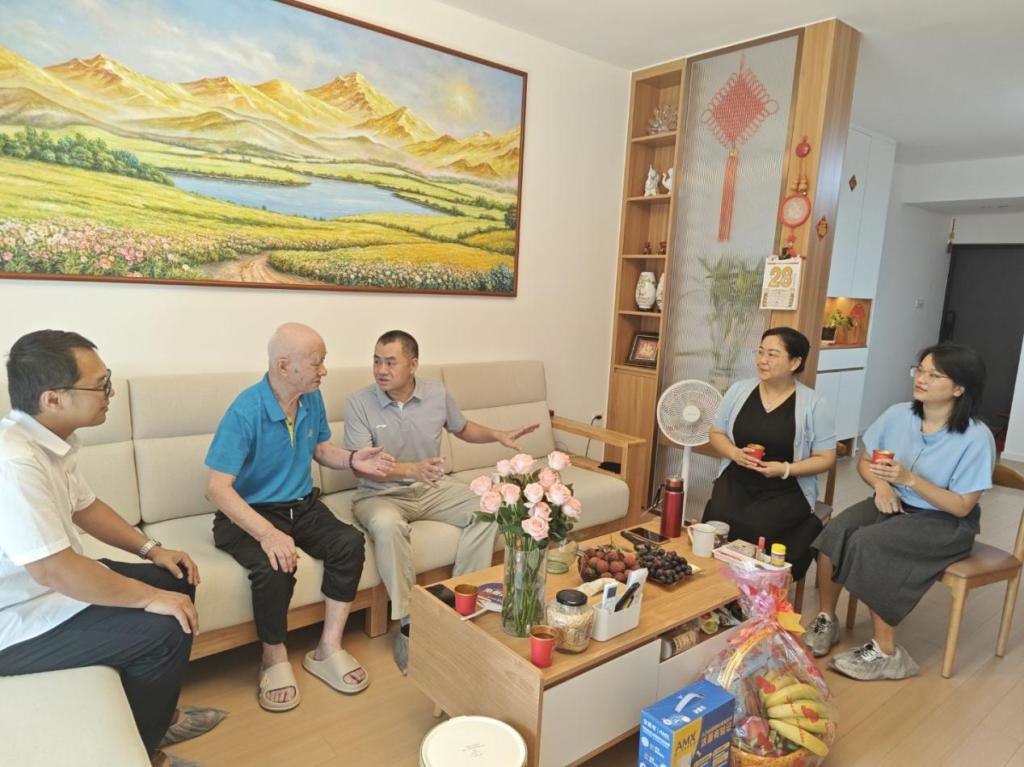 随后,慰问组来到陈宁老师家中。严世涛副院长与陈老师及其家人亲切交谈,详细了解了陈老师的健康状况和实际需求。严世涛副院长叮嘱陈老师要保重身体,安享晚年,生活中遇到任何困难要及时向组织反映,党组织就是党员最坚强的后盾。慰问组认真倾听了陈老师的心声和对学院工作的意见建议。陈老师对党组织的长期关怀表示由衷的感激,脸上洋溢着幸福的笑容,表示虽已离开工作岗位多年,但心始终与学院相连,为学院近年来取得的成就感到骄傲,并祝愿学院各项事业蒸蒸日上。他也表示会力所能及地继续发挥余热,关心下一代成长。