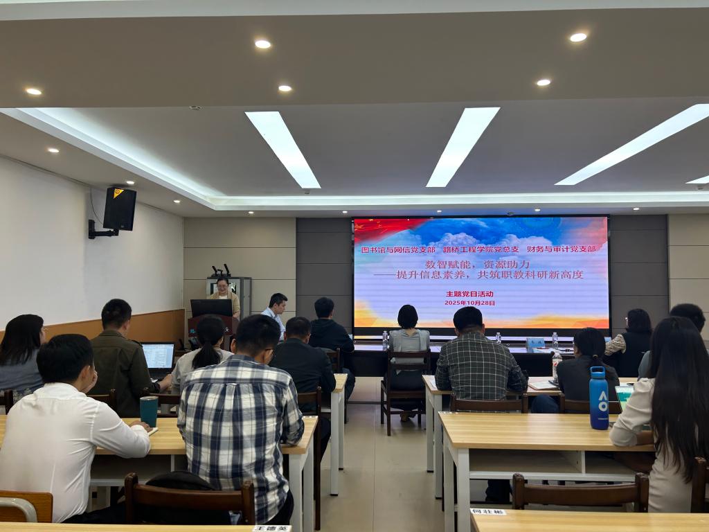 (路桥讯)为积极响应国家教育数字化战略行动,赋能职业教育科研水平提升。10月28日,路桥工程学院党总支联合图书馆与网信党支部、财务与审计党支部开展了一场题为“数智赋能,资源助力——提升信息素养,共筑职教科研新高度”的主题党日活动。本次活动为师生带来一场集政策解读、技术应用与资源获取于一体的科研盛宴,学院院长助理骆俊晖博士主持,学院200名师生代表参加活动。