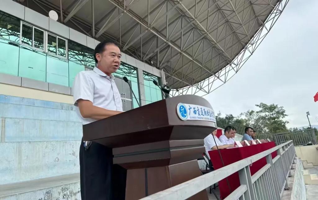 最激动人心的时刻,当属全体新生集体宣誓环节。在领誓员的带领下,一千多名路桥学子高举右拳,面向未来,发出掷地有声的誓言:“争做领路人,甘当铺路石!逢山开路,遇水架桥!祝福祖国,繁荣昌盛!”这不仅仅是一句口号,更是路桥人的职业信仰与精神传承。“领路人”象征着开拓创新的责任与担当,“铺路石”体现了默默奉献的朴实与坚韧。而“逢山开路,遇水架桥”的豪情,则生动刻画了路桥人无畏艰险、勇往直前的专业精神。这铿锵的誓言在操场上空久久回荡,深深烙印在每一位新生的心中。青春的呐喊汇聚成强大的声浪,表达了路桥学子将个人理想融入国家发展,立志为祖国的交通事业和基础设施建设贡献力量的决心与情怀。