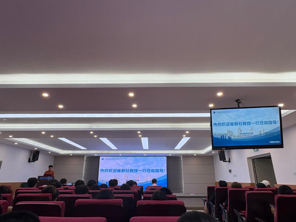 (路桥讯)9月24日上午,广西交通职业技术学院路桥工程学院迎来学术盛宴。长江学者特聘教授、重庆大学土木工程学院崔新壮教授携团队莅临学院,开展专题讲座。会议由广西交通职业技术学院副校长邱实主持,路桥工程学院师生代表及相关专业教师现场参会,共同聚焦交通领域的智能化前沿技术与发展方向。