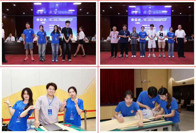 在肖成明、蒙艺、王伦、杨阳、周恒倩、姚如胜等多位老师共同指导下,道桥2023-8班张议、铁道2023-3班管洁、轨道2023-3班覃依薇、智能建造2024-1班董洁、土木检测(水运)2024-2班金涛、智能建造2024-1班覃芳6名同学组成的两支队伍,围绕 “乌篷船模型结构设计与制作” 赛题,在 12 小时内完成设计制作。面对赛前规则临时调整,队员们凭借扎实专业知识,快速优化船体线型、抗撞击结构等设计,平衡载重与航行能力。最终,两支队伍分别斩获一等奖和二等奖,学校荣获优秀组织奖,指导老师获评优秀指导老师。