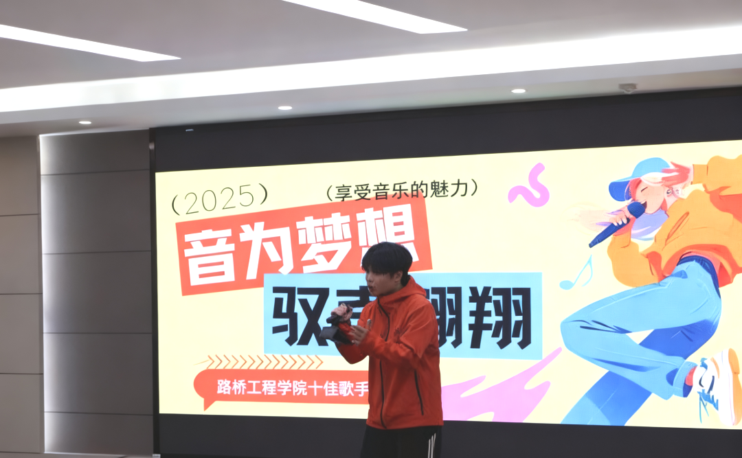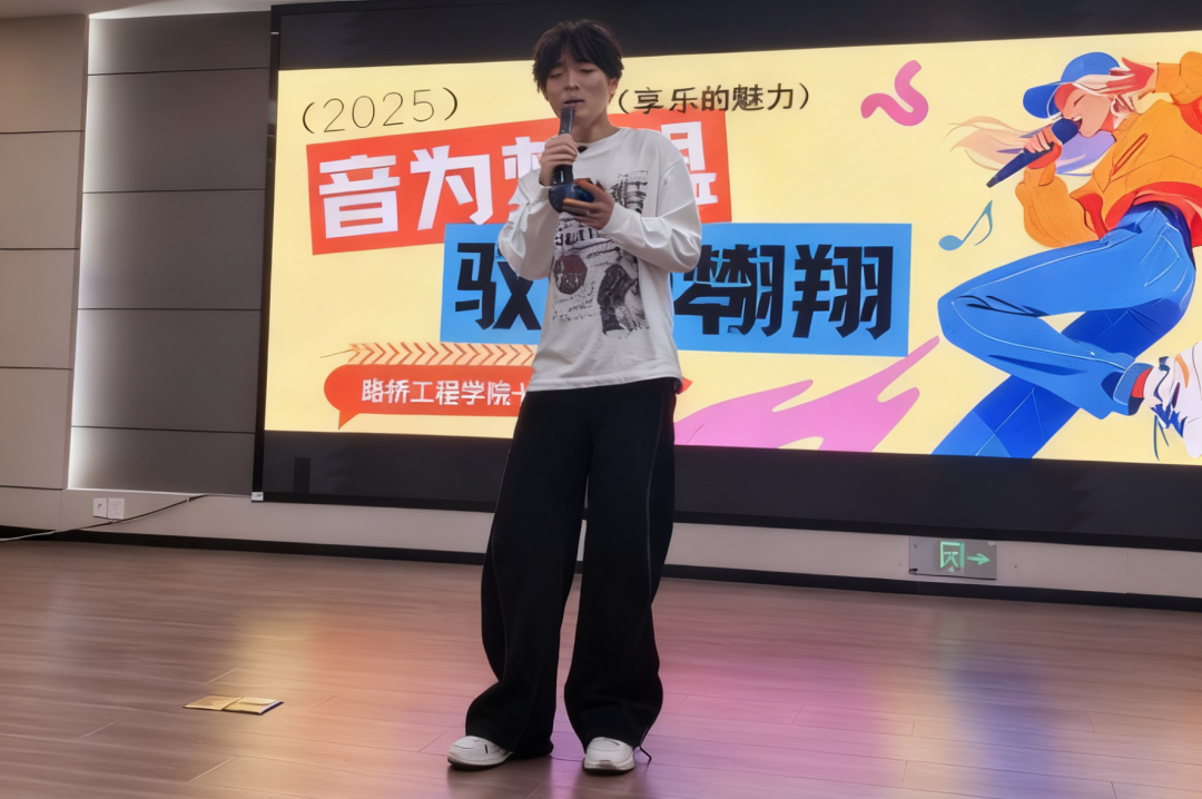 (路桥讯)歌声点亮青春,旋律唱响梦想。10月28日,路桥工程学院“音为梦响,驭声翱翔”十佳歌手大赛总决赛在路桥楼615圆满落幕。学院党总支副书记孔洋、辅导员代表及各年级学生代表共同到场,见证这场属于路桥学子的音乐盛典。本次大赛自启动以来,便受到全院师生的广泛关注,经过初赛的选拔,23位实力唱将脱颖而出,站上总决赛的舞台,用歌声传递青春力量,为现场观众带来了一场震撼人心的视听盛宴。