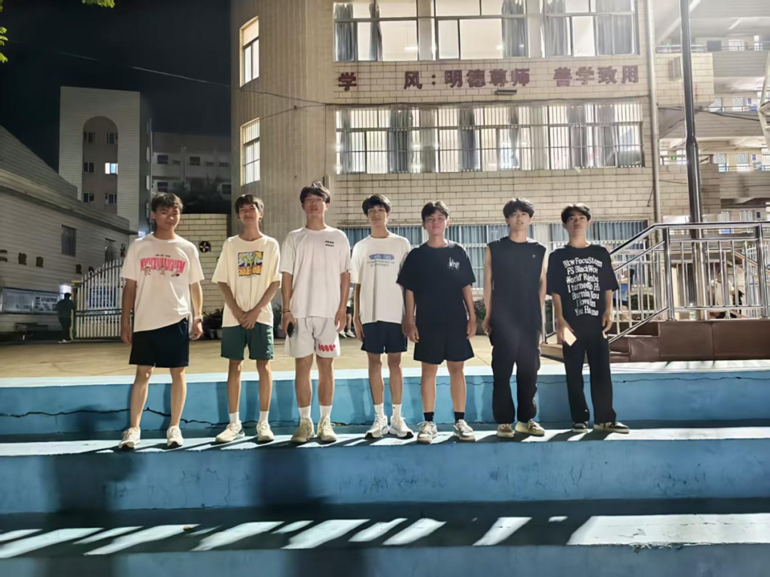 夏夜操场,刚结束奔跑的我们,汗珠在灯光下闪烁。晚风掠过耳畔,带着青春的燥热与畅快。身后“明德尊师 善学致用”的学风标语,见证着我们在运动中挥洒的热血,每一次呼吸都藏着不服输的劲头,这就是属于我们的活力时刻。