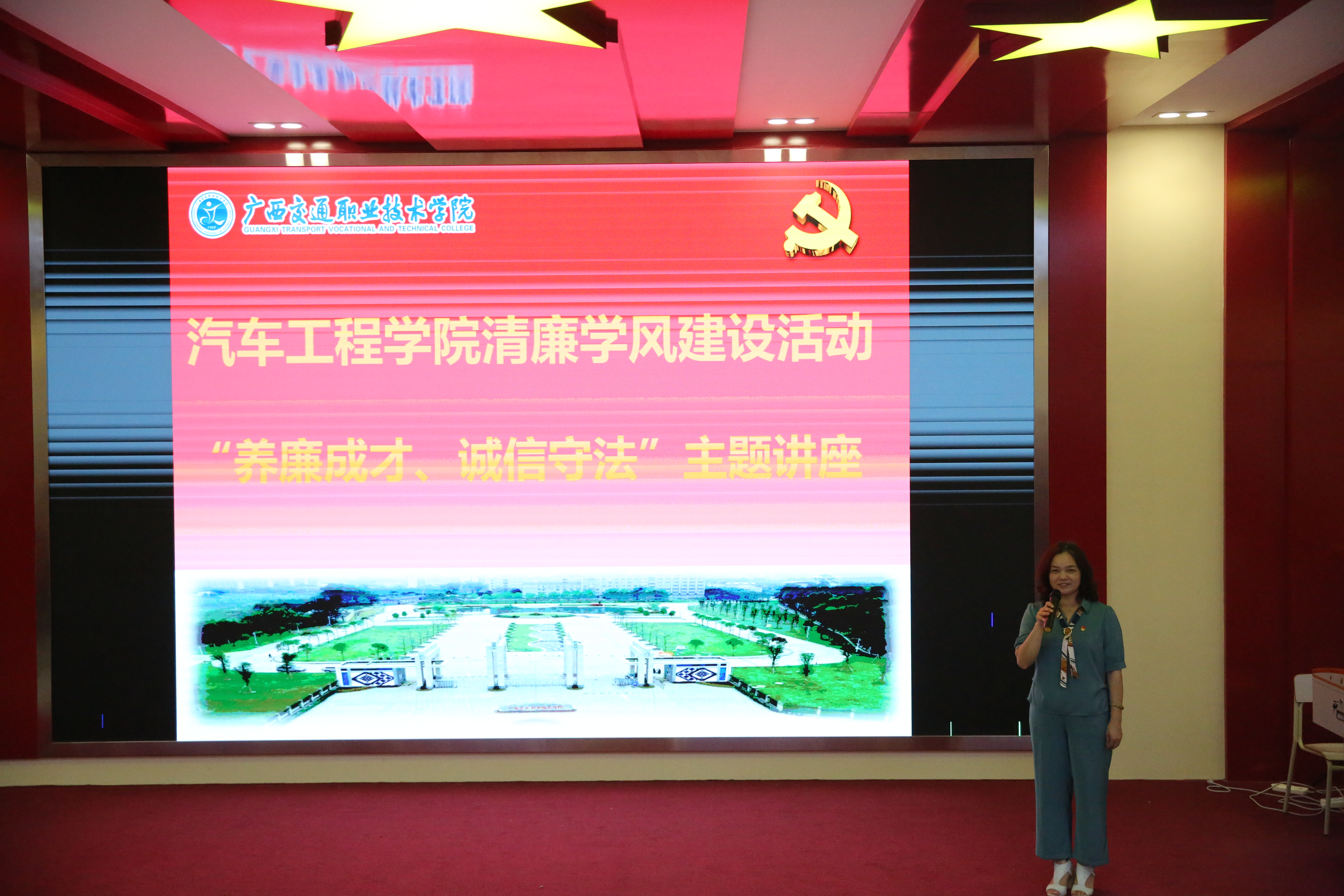 为推动清廉校园建设,从思想上固本培元,一体推进理想信念教育、党纪国法教育、案件警示教育。使清廉文化走进课堂、浸润校园,融入学校教育教学全过程,弘扬崇廉拒腐的校园风尚,不断夯实“清廉交院”建设的基础。汽车工程学院6月29日邀请学校纪委委员、通识教学部党总支书记刘爱英为师生开展以“养廉成才、诚信守法”为主题的擎力清廉讲座。