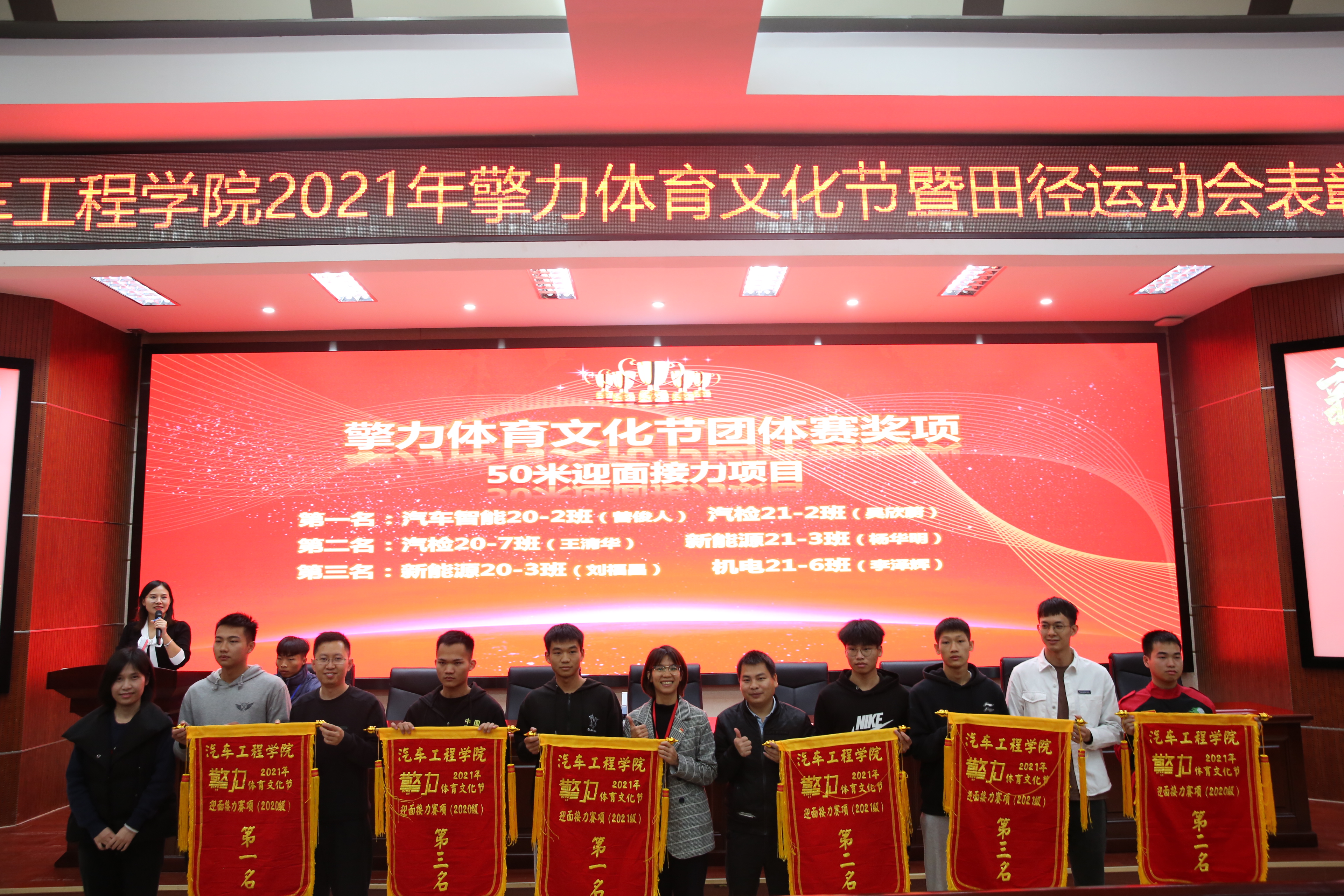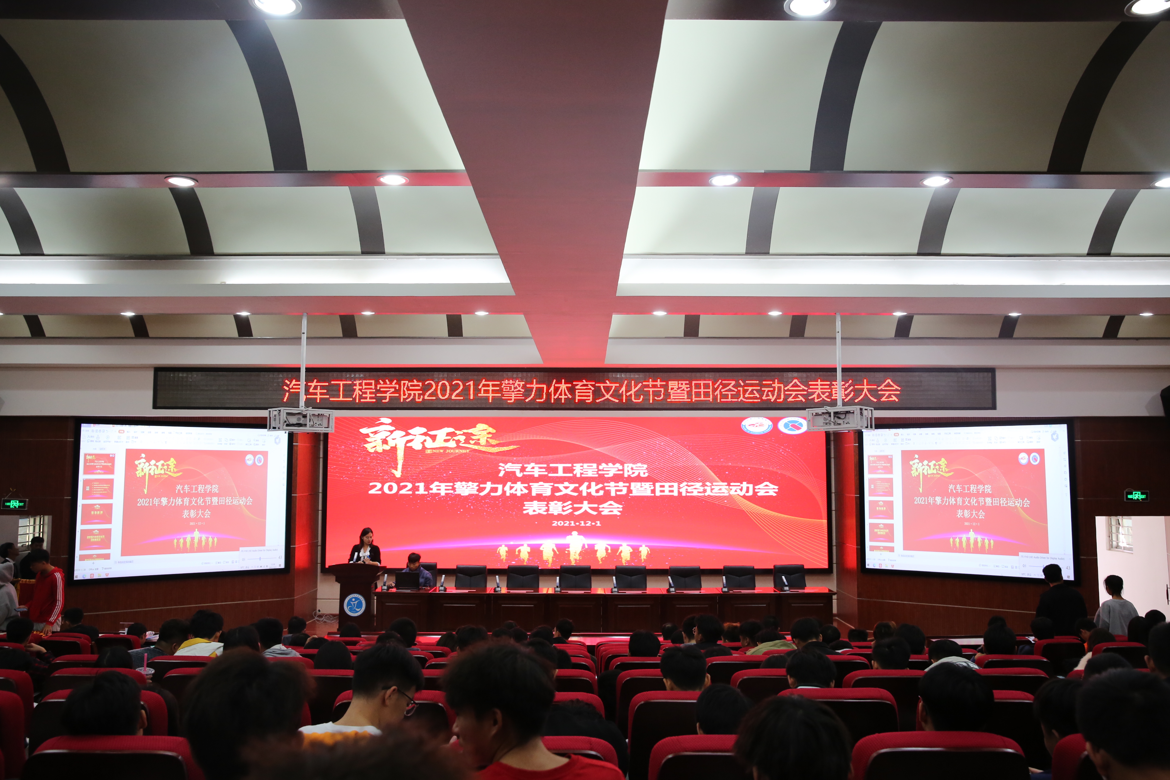 (汽车工程学院讯 吴欣蔚、刘凤鸣/文)激励先进,鼓舞斗志。12月1日,学院举行了2021年擎力体育文化节暨田径运动会表彰大会,对2021年下半年在体育赛事中表现突出的班级和个人进行集中表彰。学院党总支副书记吴丹、学生干事张露尹以及全体辅导员、各班班长、体委共200余人参加了表彰大会。