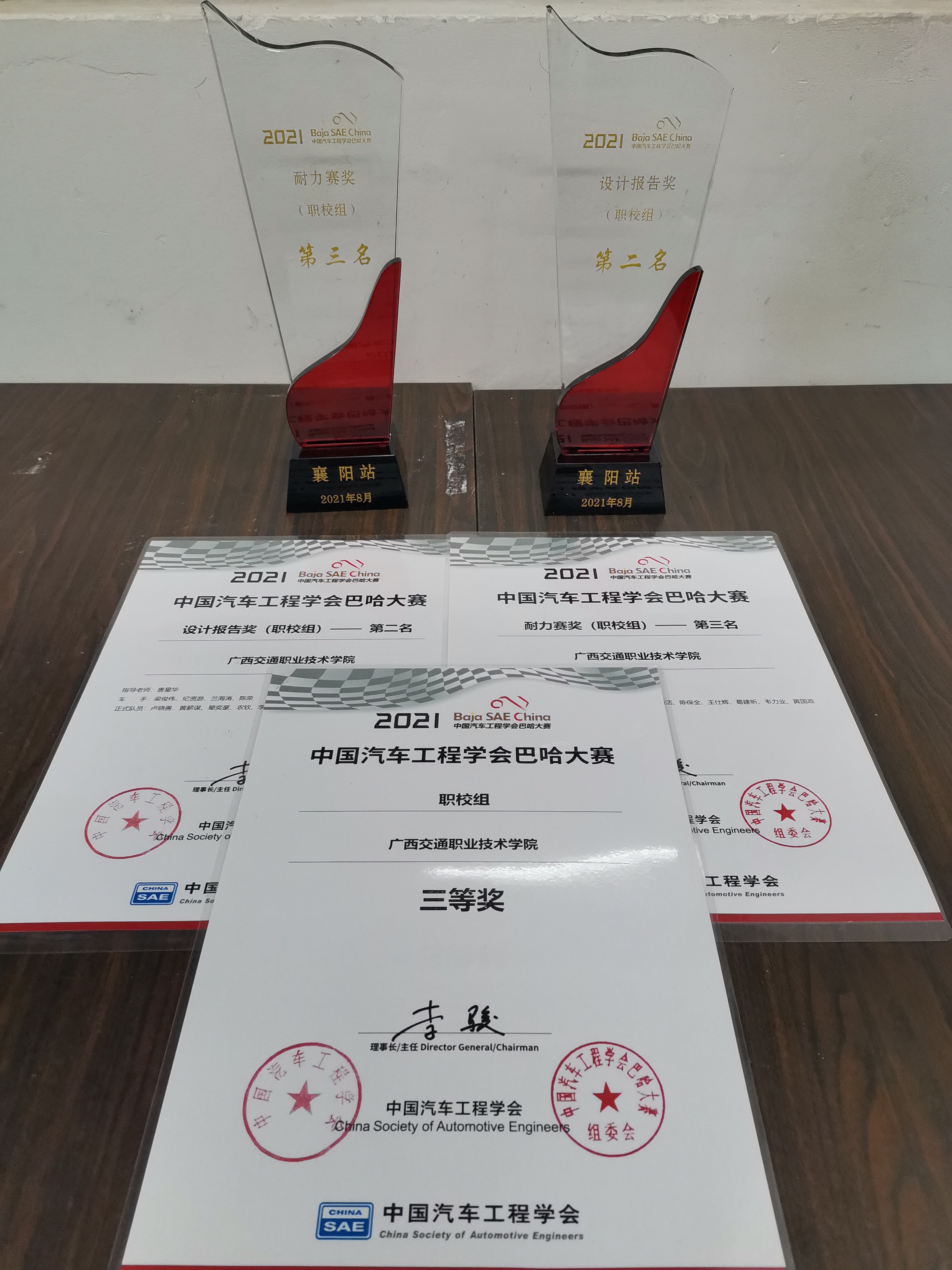 (汽车工程学院 讯 梁业灿、唐星华 文/唐星华 图)“无青春,不巴哈”。2021年9月24-28日,中国汽车工程学会巴哈大赛在湖北省襄阳市梦想汽车小镇举行。我校擎力车队与与来自全国本科、专科共计96支车队同台竞技,职校组设计答辩第二名,耐久赛第三名的好成绩,最终荣获职校组总成绩三等奖。