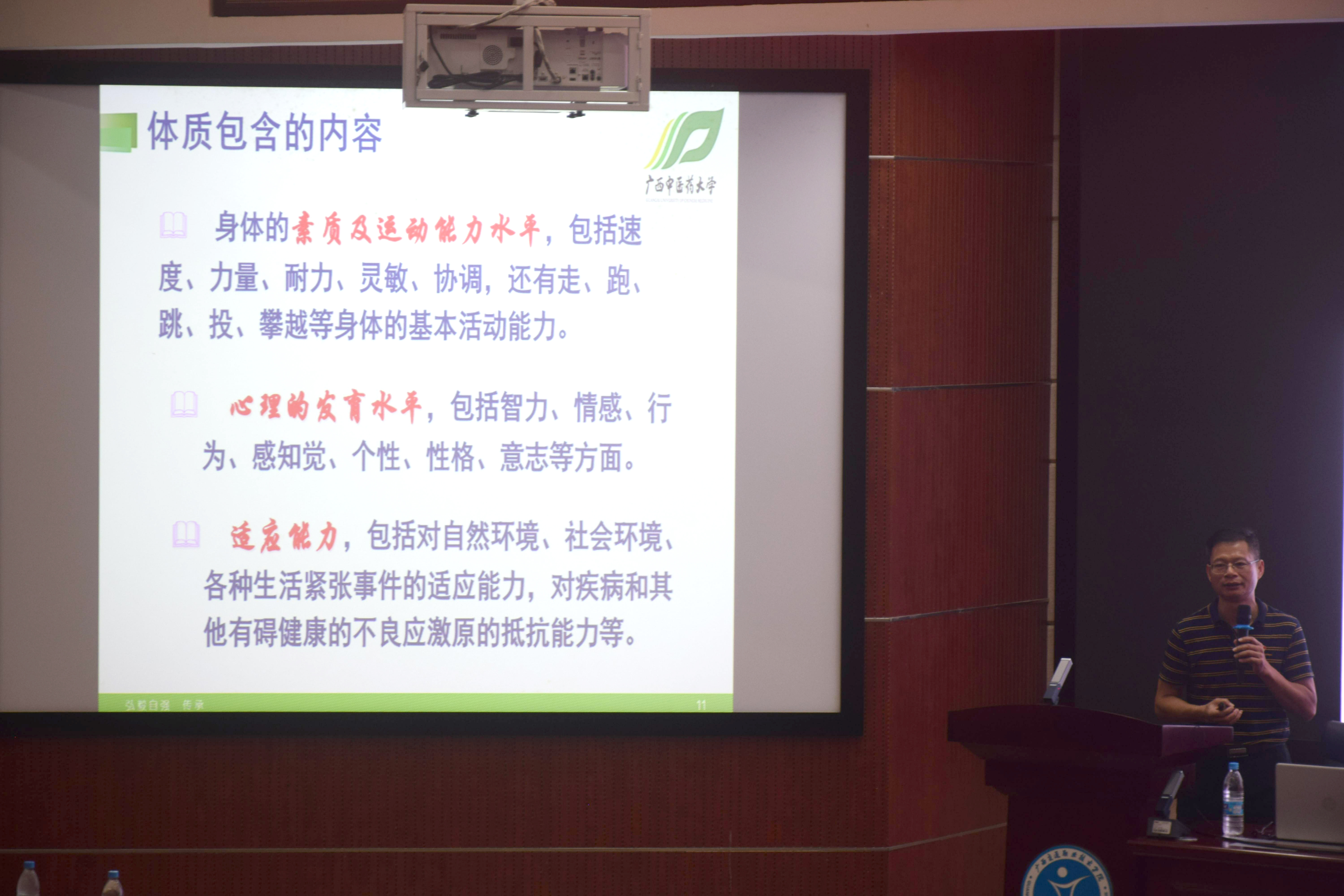 (汽车工程学院 讯 梁业灿、覃炳露/文)2021年11月06日下午,乘着汽车工程学院擎力体育文化节的秋风,学院党总支为群众办实事,特邀广西中医药大学体育运动健康专家李荣源教授,在昆仑校区C1多功能厅为全院师生开展了一场关于“运动与健康”主题讲座。学校体育部部长曾忠文、学院副书记吴丹参加了本次讲座。