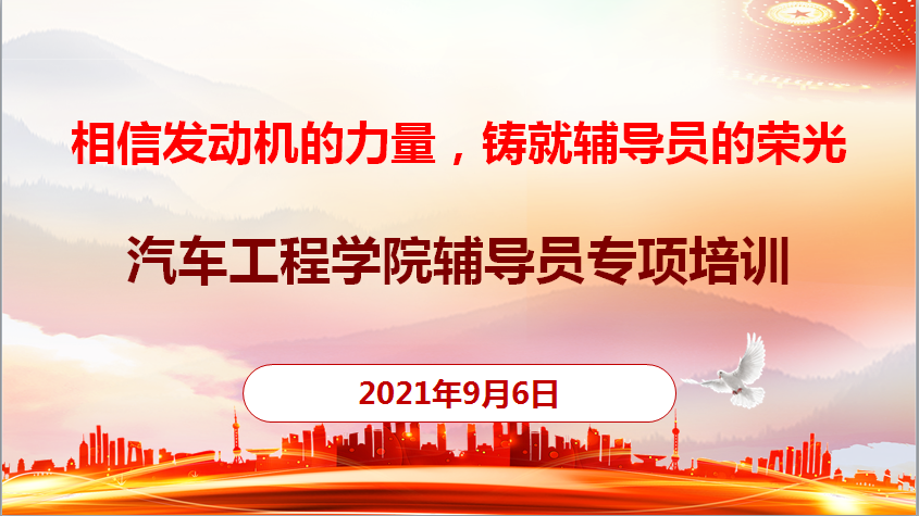 辅导员专项培训以“相信发动机的力量,铸就辅导员的荣光”为主题,面向全体辅导员班主任,将在9月-12月以单周例会,双周开展相关业务培训学习的方式,开展汽车特色的学生管理工作专项培训,通过系列培训提升辅导员班主任专业能力和职业素养,打造一支高水平高素质高凝聚力的辅导员队伍。