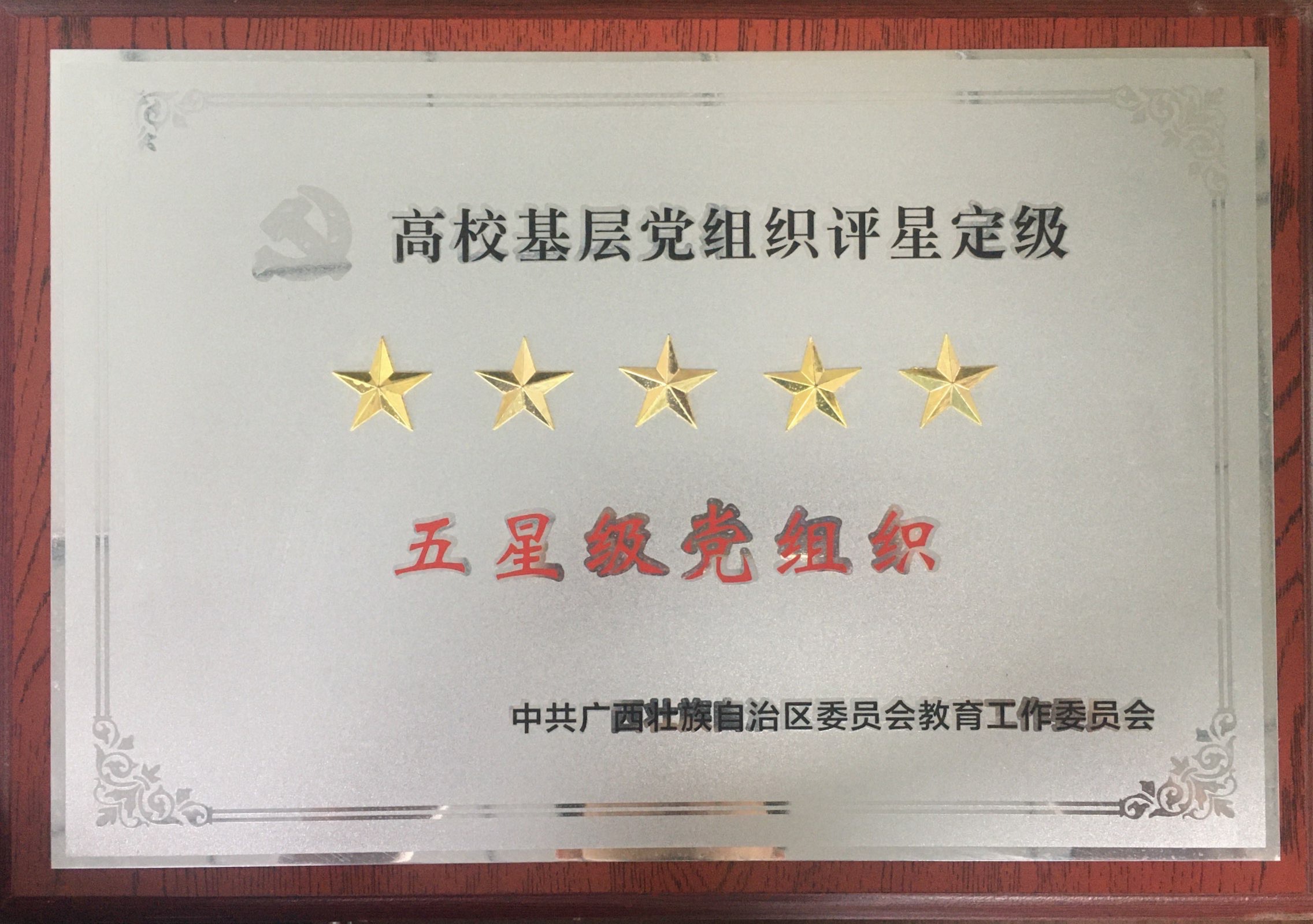 五、荣获自治区党委教育工委五星党支部年度、2019年度汽车工程学院教工第一党支部获得自治区党委教育工委“五星级党支部”称号。