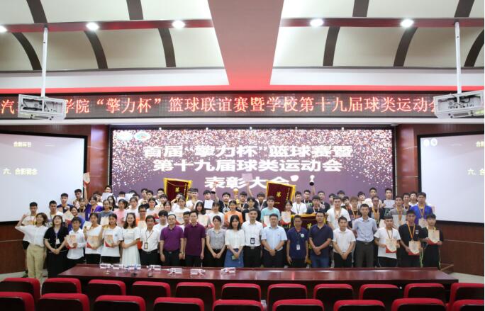 (汽车工程学院 讯 吴欣蔚、王杰身/文)7月13日,学院在报告厅举行首届“擎力杯”篮球联谊赛暨学校第十九届球类运动会表彰大会,以肯定及激励同学们此次赛事的成绩,以及在比赛中体现拼搏的体育精神。学院党总支副书记吴丹、学校体育教学部副主任莫沉、汽车工程学院团总支书记张露尹以及学院专职辅导员、各球类运动队教练到场参会。