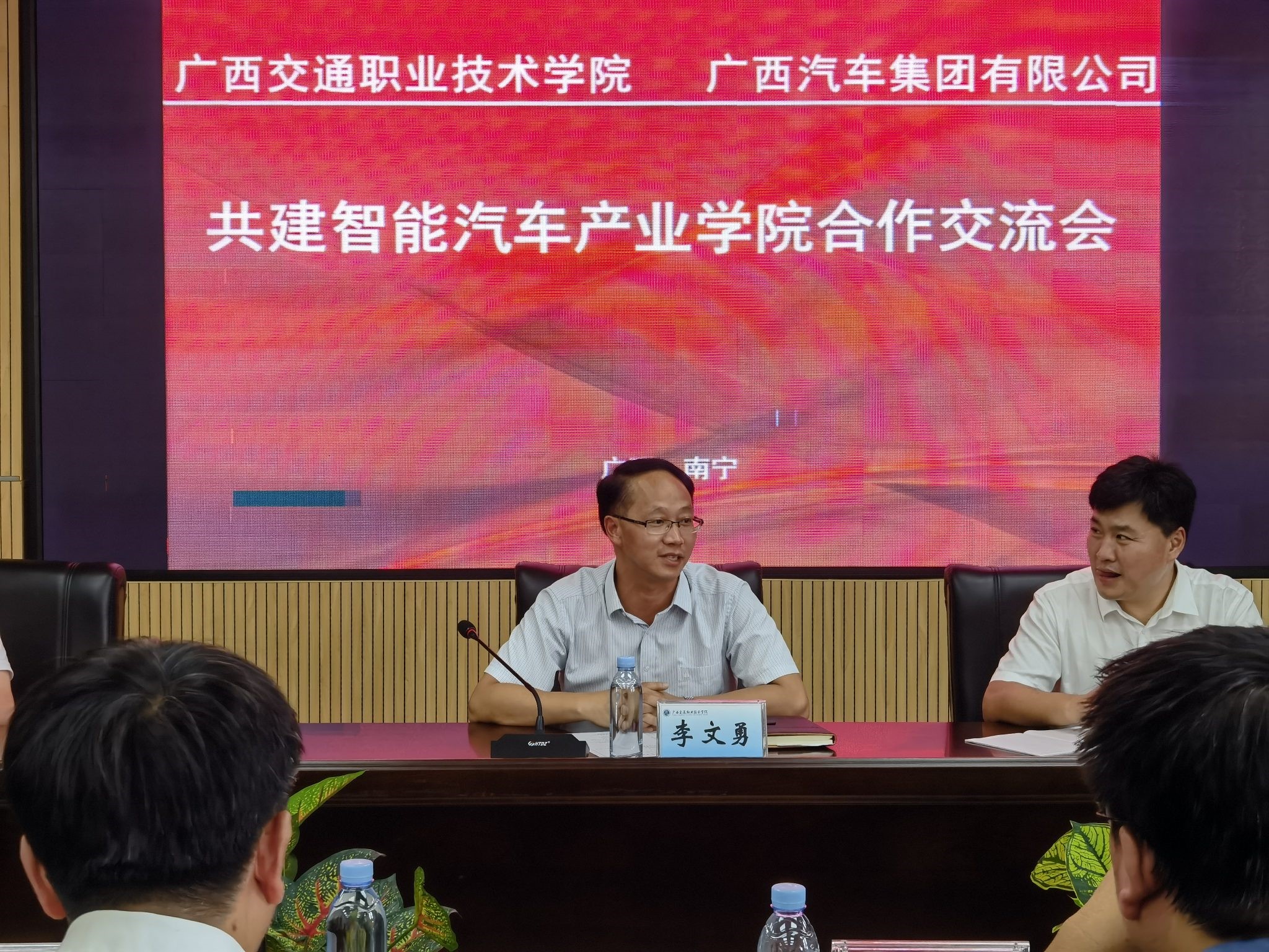 (汽车工程学院 讯 解宏琳、韦皓/文)2021年9月13日,在昆仑校区召开了共建智能汽车产业合作学院交流会。出席本次会议的有广西汽车集团领导HR总监李钦德,广西汽车集团技术中心总监黄好,安莱(北京)汽车研究院院长阚有波,桂林航天工业学院汽车工程学院院长陈元华及企业公司领导。我校校长李文勇、汽车学院刘学军、副院长谢军及部分教师参加了本次会议。刘学军院长主持本次会议。
