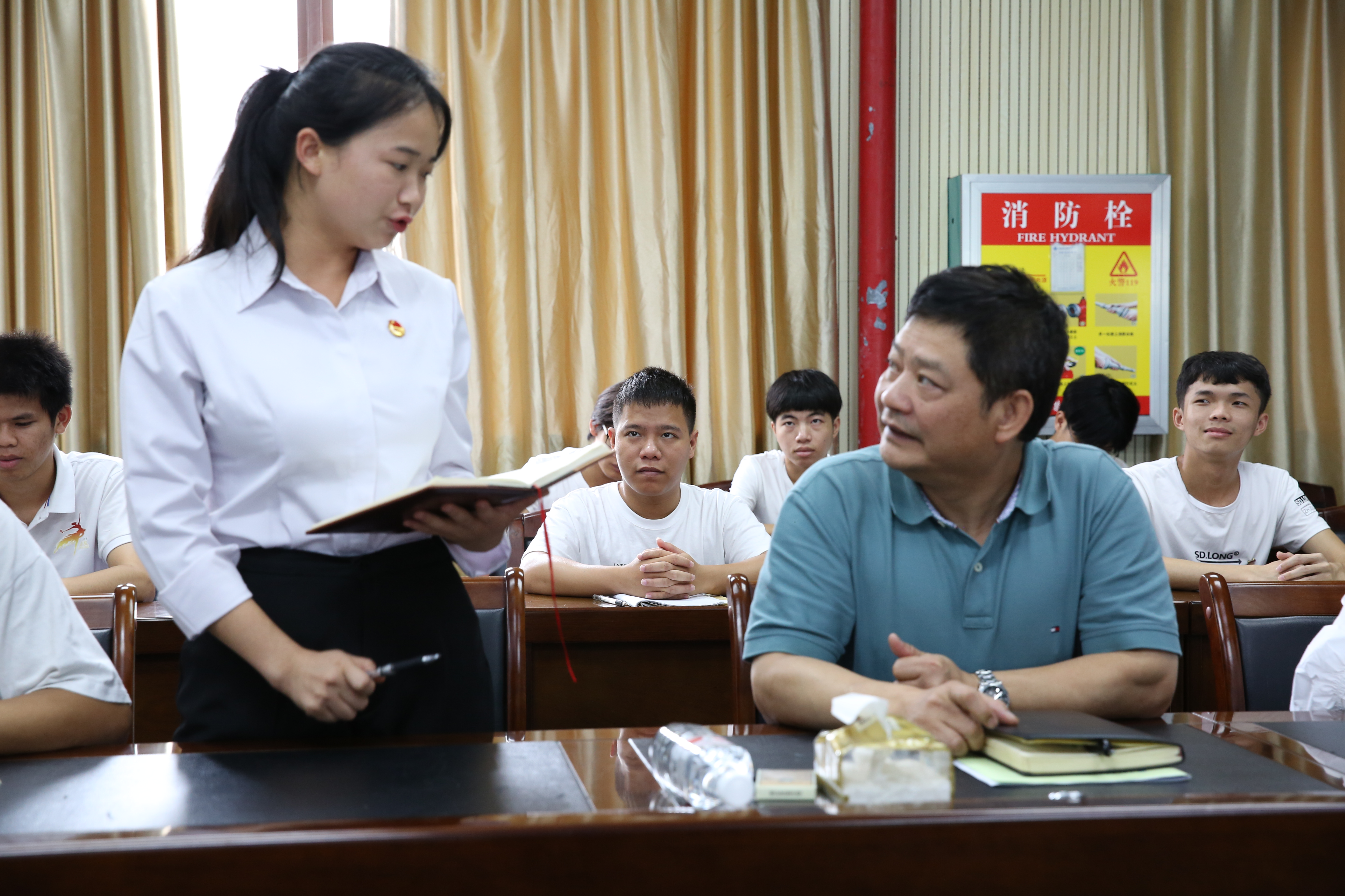 讯 林运虎、王杰身、梁业灿/文)6月22日,学校党委书记温宗胤深入汽车工程学院,在汽车楼四楼会议室参加了机电一体化技术2019-3班主题班会活动。汽车工程学院党总支书记刘学军、党总支副书记吴丹以及辅导员林运虎参加了此次会议。