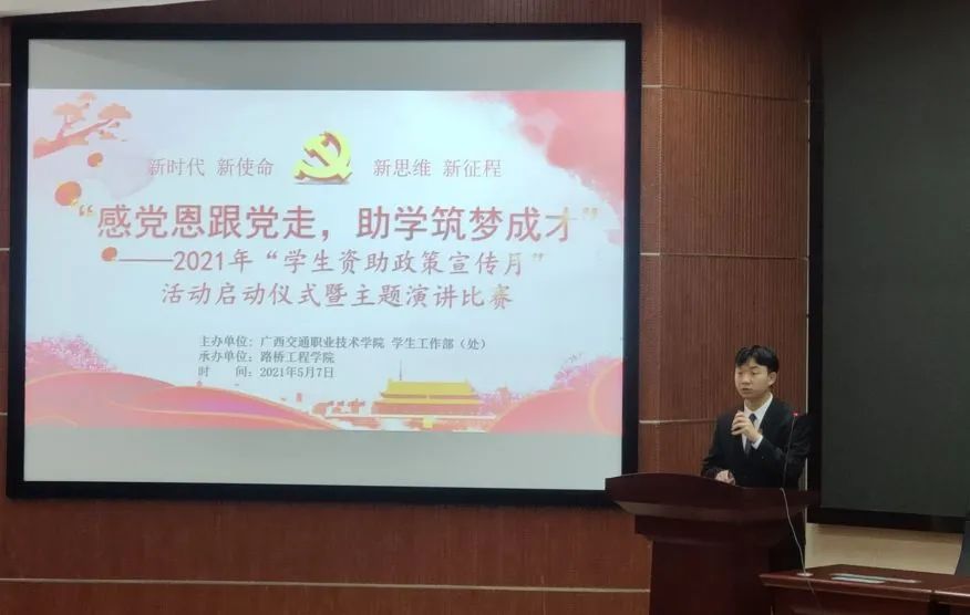 本次资助演讲比赛围绕展现家庭经济困难学生在国家资助政策的支持下,爱党爱国、不畏困难、积极进取、奋发学习、自立自强的精神面貌为主题,讲述受资助学生成长事迹、实际行动和心路历程,以迎接建党100周年为契机,突出感恩党,感恩祖国,分享青年学子成长成才的励志故事。本次参加学校决赛来自学校6个二级学院的36名参赛选手,我院有6名学生代表参加。比赛得到学院领导的高度重视,并做出了详细具体的安排。比赛得到了全院各班级的响应,积极报名参加,经过初赛后,选出了6名优秀“汽车人”参加学校决赛。在我院资助工作站王清华老师、林运虎老师悉心指导下,我院选手的一颗感恩之心,一份励志情怀,用朴实的语言,娓娓道来道出了在国家资助下成长的经历,对国家资助政策的感激之情,打动了在场的评委和观众,获得了大家的肯定,充分体现了我院学生“相信发动机的力量”的“擎力”精神,展现了新时代青春的风采。