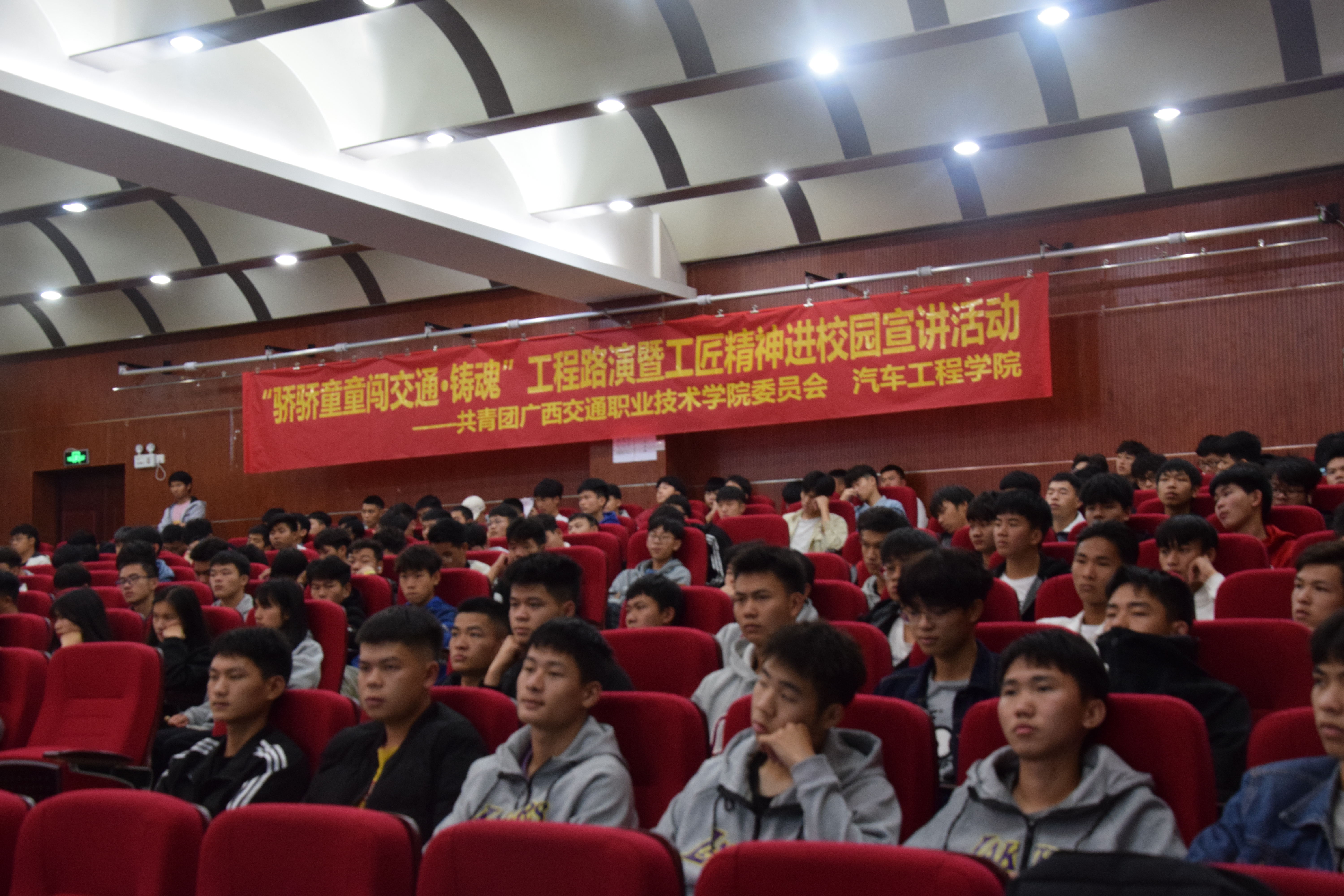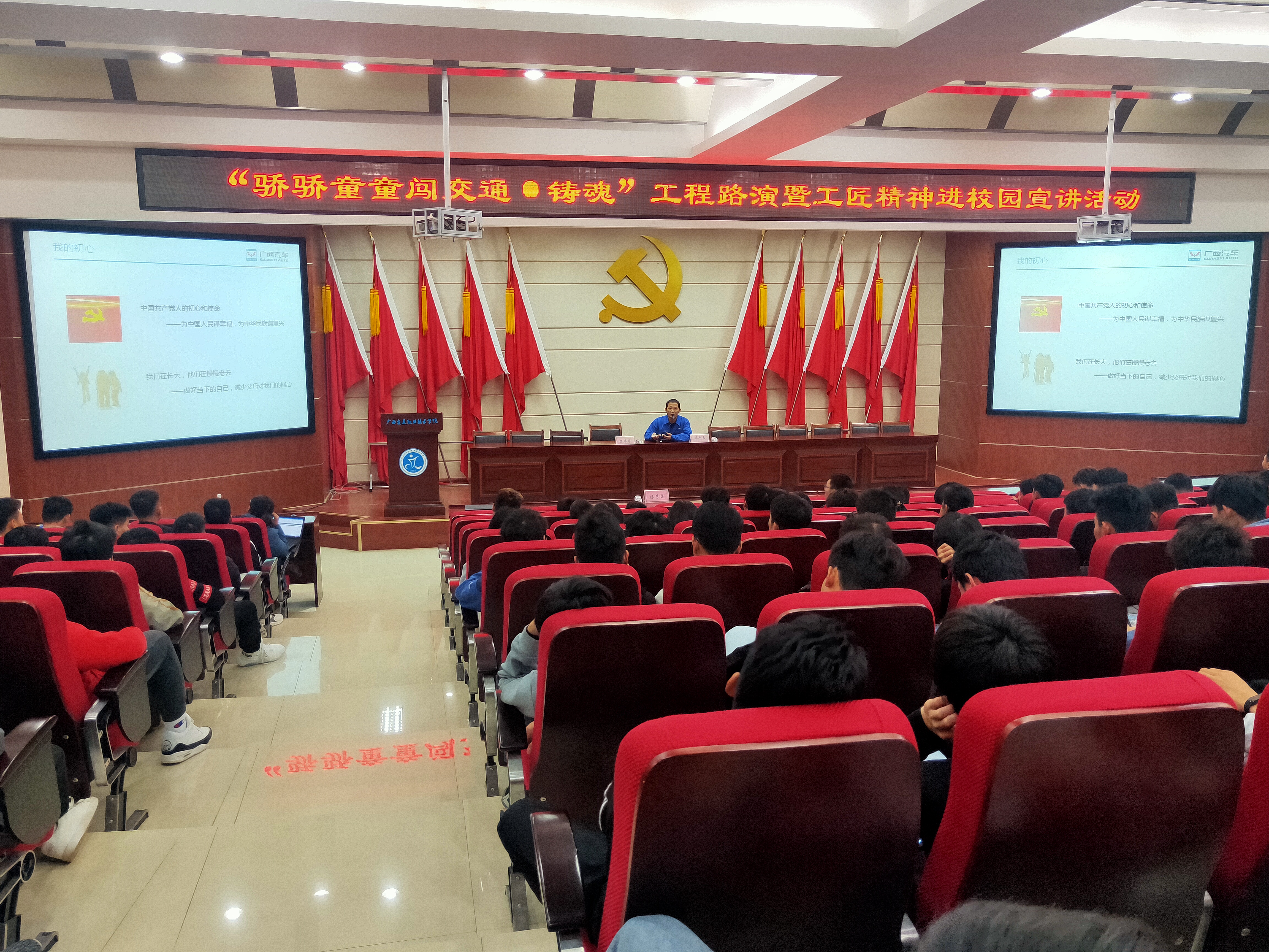 、敢于创新、及时记录 、总结提高、调整状态;匠心收获,匠心的磨炼和成果;如何从一名一线员工成才为一名全国技术能手等内容。从大师的分享中,现场的师生真切的感受到成为一名技术能手是多么的不易,需要克服许多许多的技术难点,孜孜不倦地追求,才有了一个一个的技术突破。王业嵩大师鼓励现场的学生:要有思考探索精神,要善于发现问题,要在学习中不断培养自己独立思考与动手能力,学会把知识转化为实践能力,学号本领,成为建设广西交通的中坚力量,争当行业的佼佼者,技术创新的领跑者。师生们被王业嵩大师的精彩讲述所吸引,现场互动频繁,掌声不断。