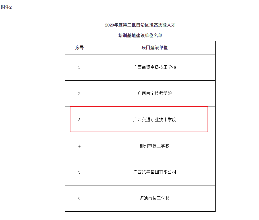 讯 吴丹 梁业灿/文)2021年1月13日,广西壮族自治区人力资源和社会保障厅公布了2020年第二批自治区级高技能人才培养基地建设单位名单,我校被认定为“2020年第二批自治区级高技能人才培养基地”项目单位。