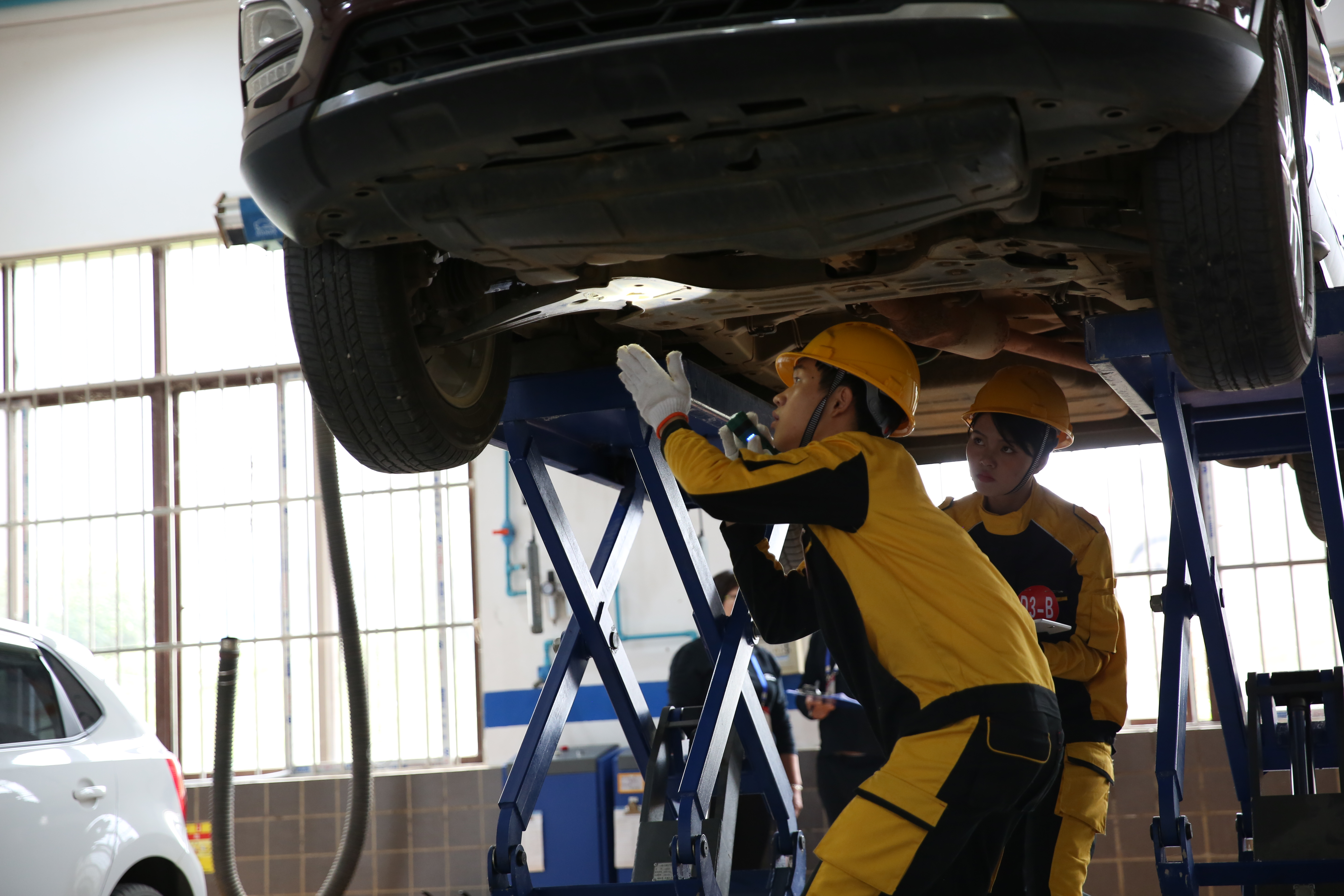 我校汽车工程学院也派出了一支代表队,院领导高度重视,选择骨干教师组建技能大赛团队,专研竞赛要求,制作详细的锻炼计划,精心指导。学生勤奋刻苦,按进度全身心投入到赛前训练,不断提高自身的专业知识和技能。在这两天的比赛中,我院代表队充分发扬“擎力”精神,团结合作、精益求精、创新进取,沉着冷静的完成了比赛。
