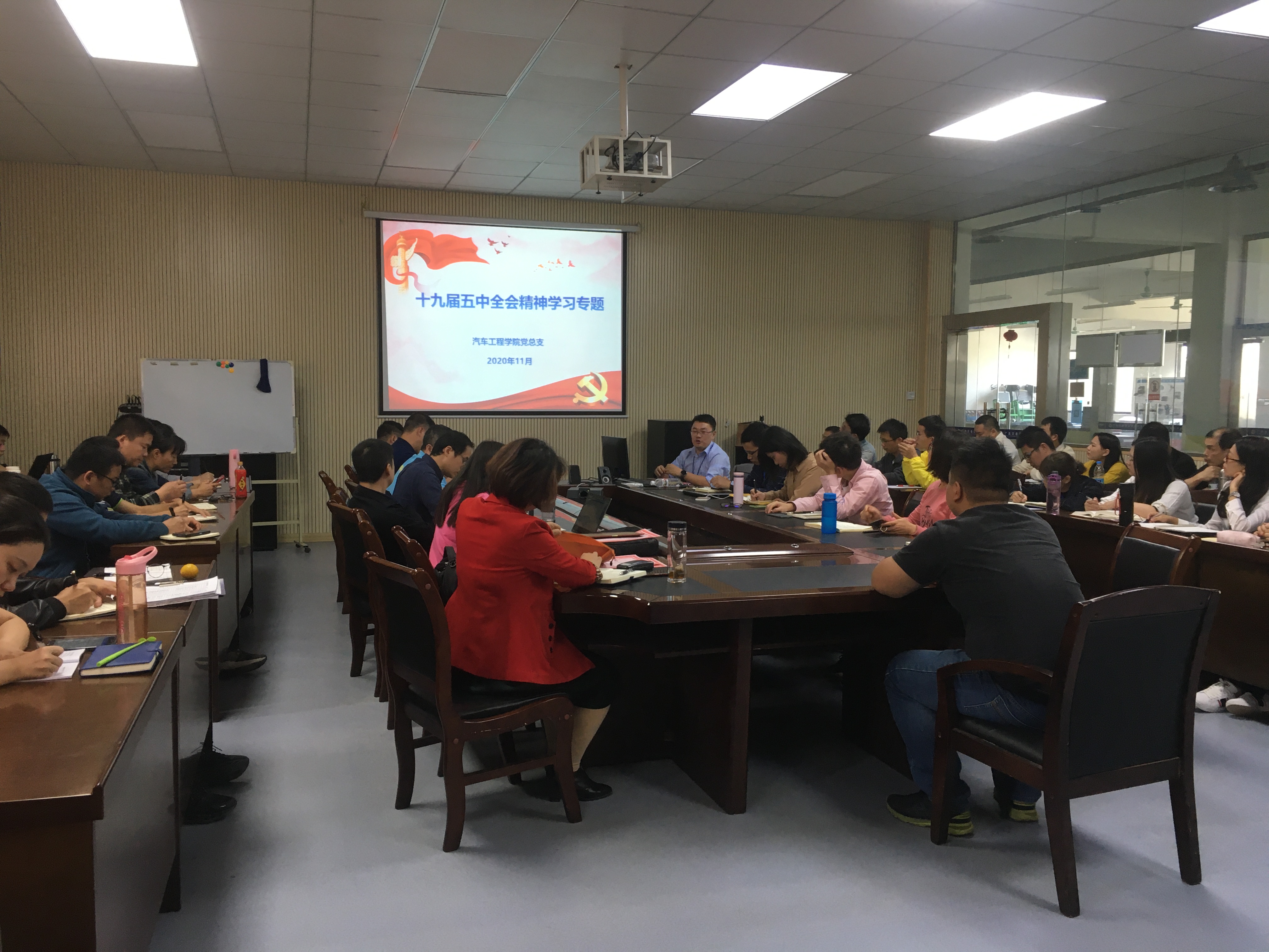 (汽车工程学院 讯 梁业灿 梁海明/文、图)为了贯彻落实党的十九届五中全会精神,抓住机遇,应对挑战,奋勇前进,统筹谋划好我院“十四五”规划,11月10日,汽车工程学院党总支组织全院教师学习十九届五中全会精神。本次学习由党总支宣传委员、教工党支部书记吴丹导学。