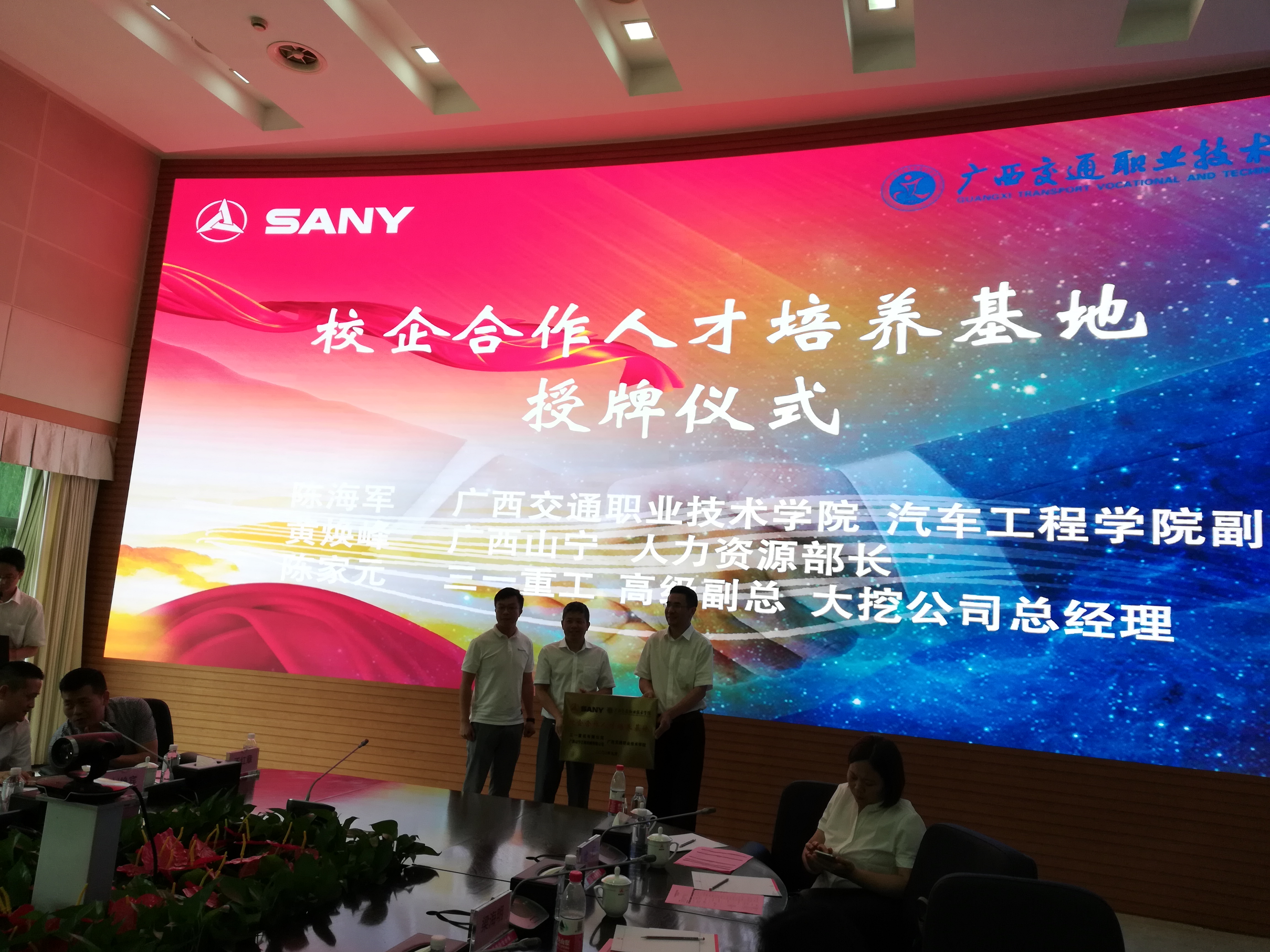 (汽车工程学院讯 梁海明、梁业灿/文、图) 为了进一步深化校企合作,提高人才培养质量,2020年9月25日,广西交通职业技术学院等全国10余所院校及多家代理商共同参观三一重机昆山产业园,近距离感受三一文化,了解人才培养机制,并与三一重机达成联合办学战略合作,举行了校企合作人才培养基地授牌仪式,我院陈海军副院长、姚红及梁海明老师参加了此次活动。