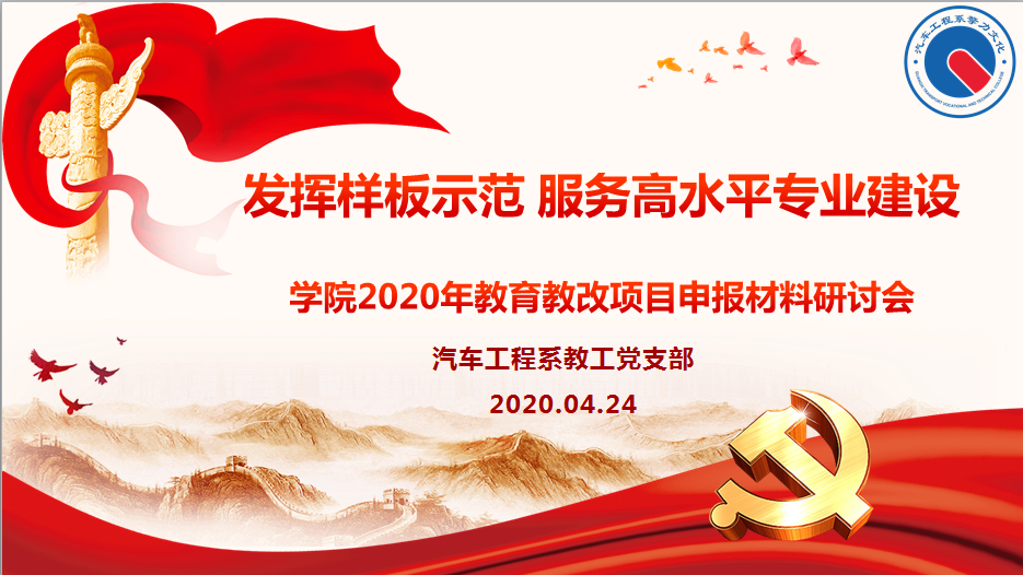 (汽车工程系 吴丹梁业灿/文 覃炳露/图)贯彻落实凝聚教师、服务教师有力,汽车工程系党支部“双带头人”工作室搭建学术互助、指导、监督的交流平台,丰富服务载体,及时了解、听取、回应教师意见和诉求,常态化做好联系、服务教师工作。把党支部建成党员之家、师生之家,增强师生归属感获得感。汽车工程系教工党支部在2020年4月24日通过线上平台开展教师课题申报、建设研讨会,由系领导、各教研室主任组成专家组,共同与申报2020年院级教改课题的负责人进行研讨,进一步提升我系课题申报、建设以及教师科研教改水平。
