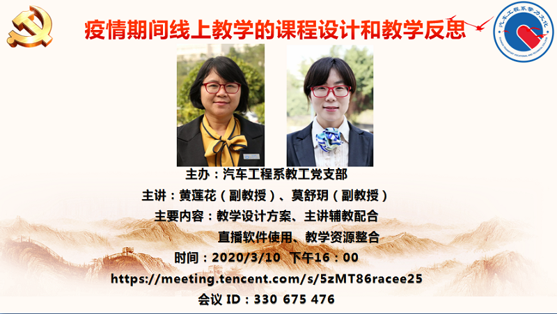 (汽车工程系 讯 吴丹、梁业灿/文、图)为了更好地贯彻落实上级有关“停课不停教、停课不停学”的部署,汽车工程系全体师生在疫情防控期间,充分发挥“互联网+”优势,经过1个多月的积极探索和实践,线上教学取得了较好的教学成效。为进一步提高线上教学水平,增强课堂吸引力,受系党总支的委托,教工党支部于2020年3月10日下午通过线上会议的形式面向本系教师开展了一次线上教学的经验交流活动。学院教务处有关负责同志、管理工程系等其他兄弟系部教师约70人参加了交流活动。学院党委莫海燕副书记也莅临交流活动现场进行指导。
