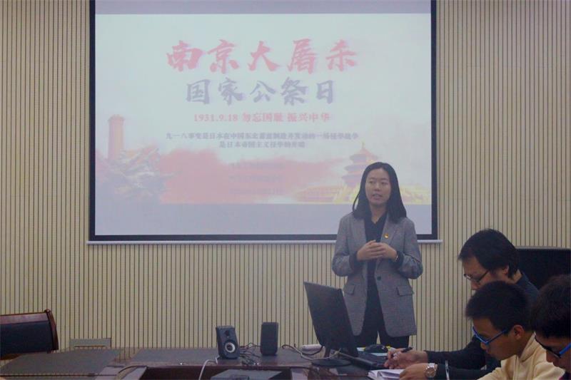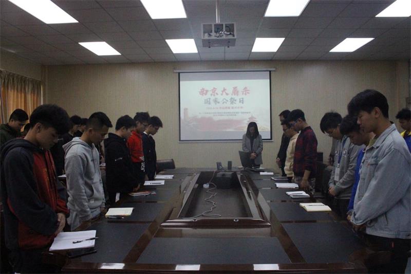 (汽车工程系 吴丹、付漓漓/文 )2019年12月13日是第六个南京大屠杀死难者国家公祭日,我院汽车工程系团总支举行主题教育活动,深切悼念南京大屠杀死难者和所有在日本帝国主义侵华战争期间惨遭杀戮的同胞。本次主题教育活动在汽车楼会议室举行,汽车工程系各班团支书、学生委员会干部代表参与本次活动。汽车工程系学生第一党支部书记付漓漓、团总支副书记刘老师带领同学们重温历史,悼念遇难同胞。