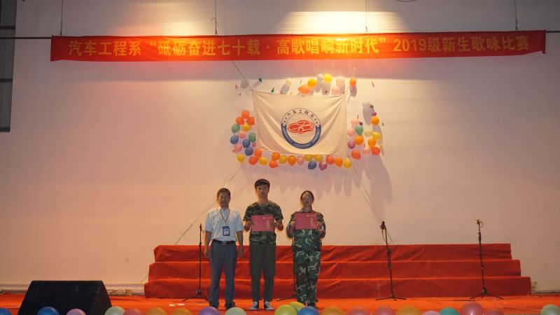 (汽车工程系 迅 吴丹、张露尹/文 周耀东/图)热烈庆祝新中国成立70周年,不忘初心,牢记使命,深入学习贯彻习近平新时代中国特色社会主义思想。讴歌中华民族伟大复兴的奋斗历程,弘扬红色精神,营造良好的文化氛围。我系于2019年9月23日在中二区舞台隆重举行“砥砺奋进七十载,高歌唱响新时代”2019级新生歌咏比赛。担任本次大赛评委的有汽车工程系副主任陈海军主任、院团委老师盘慧凤老师以及系部其他老师。