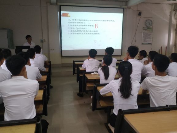 本次知识竞赛活动由王朵老师组织,学生自由组队,每队4名队员,竞赛分为四个环节:必答题环节、选答题环节、抢答题环节和风险题环节。比赛现场,各代表队选手们发扬团结协作精神,积极思考、踊跃答题,特别是在抢答题环节,场面一度紧张,各参赛队都在聚精会神等待主持人“请抢答”三字的话音。竞赛中各参赛队将各自水平发挥得淋漓尽致,充分彰显了我系学生的思想道德修养。