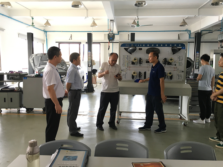 在陈海军副主任的带领和陪同下,先后参观了汽车楼一楼丰田、福特,二楼日产、通用和车身实训室的建设情况,以及详细介绍了我系在产教融合、校企合作方面取得的突出成就;在汽车楼三楼,陈海军副主任主要介绍了“中印汽车职业技术技能培训中心”、“中德汽车机电职业技能培训中心”的建设情况以及在国际交流中取得的丰硕成果。
