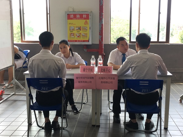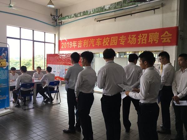 本次专场招聘会,共有8家来自区内各地市的经销商参加,为汽车工程系各专业提供了86个包括机电维修、销售顾问、服务接待、钣金、喷漆等在内的急需就业实习岗位。招聘会共有50多名学生踊跃参与,有40多名学生现场与企业达成初步的实习意向,这部分学生将组成首届“吉利班”校企合作订单班,然后在本学期结束后进入企业进行顶岗实习。