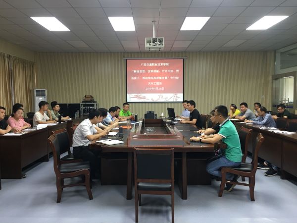 【汽车工程系 讯 吴丹 梁业灿 王朵 文/ 梁业灿/图】为了贯彻落实鹿心社党委书记在全区省级领导和厅级主要负责同志专题研讨班开班仪式上的讲话精神以及学院党委的相关要求,结合我系党总支实际工作,进一步解放思想、创新思路,扩大讨论对象和讨论范围于4月26日开展了以解放思想、创新思路为主要内容的解放思想大讨论活动。