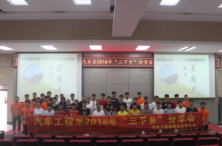 【汽车工程系讯 吴丹、张露尹文/ 黄尧、韦进琨/图】青春中国梦,奋进新时代,为贯彻落实三全育人,从实践育人、文化育人出发。在2019年4月9日下午15点,C2多功能厅开展了汽车工程系2018年暑期“三下乡”分享会活动。本次到场的有张露尹老师、李程武老师、许松老师和团总支学生会、6S汽车技术服务社、机电创新协会、宿建会的学生。