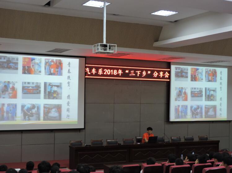 分享会由黄玉童主持,首先观看了汽车工程系2018年暑期“三下乡”的精彩视频,接着由陆广源同学给我们分享“三下乡”时的心得体会,还讲述了在志愿服务的过程中义务维修家电、检车及美容车辆、慰问老党员和辛勤劳作的过程、体验和感悟。最后由李程武老师讲分享了感受和对学生的要求:时刻都要保持良好、积极、乐观的心态志愿服务于群众,在实践中锻造、丰富自我,不断砥砺意志品格。