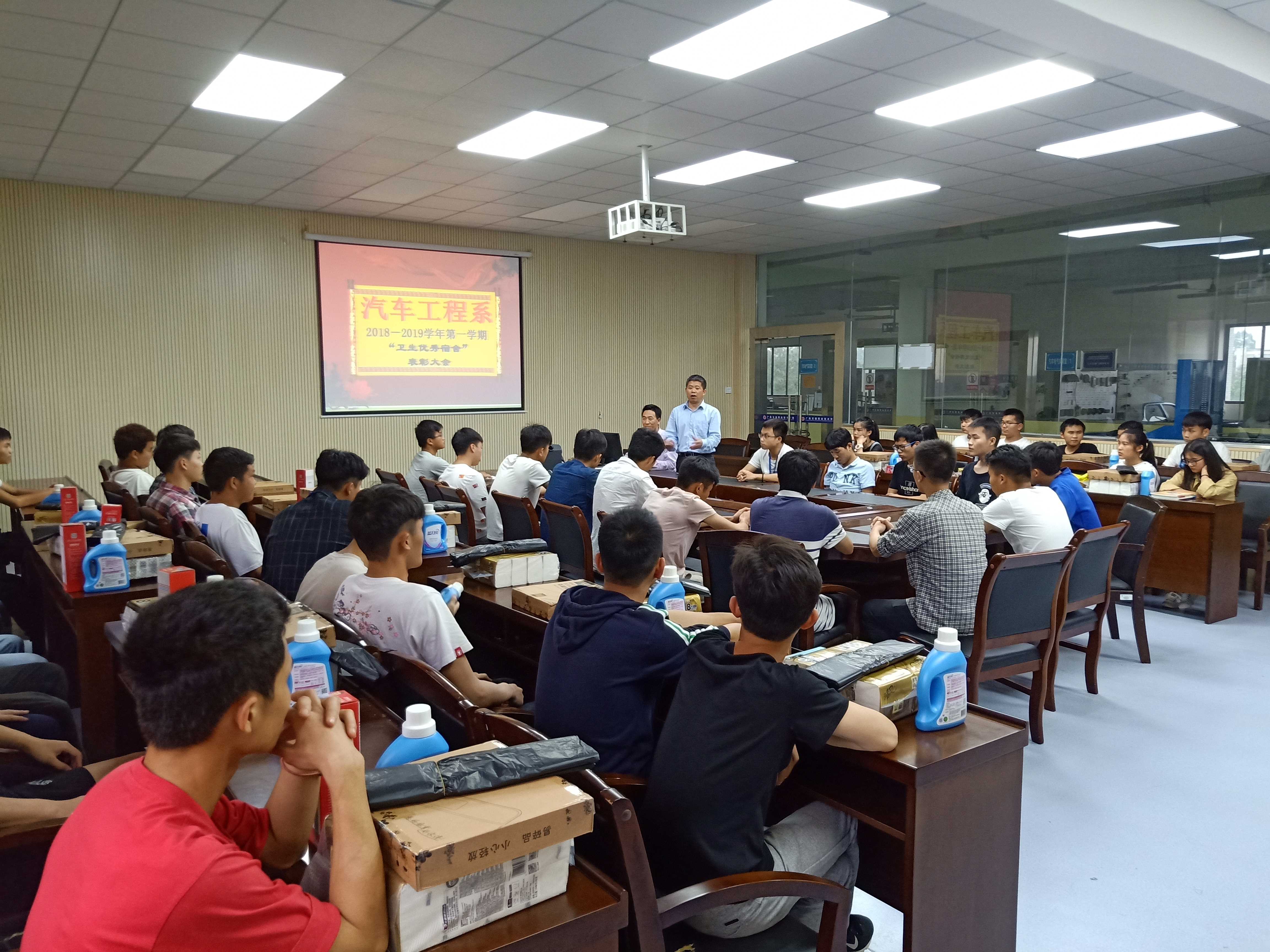 【汽车工程系 讯 张露尹、谢耀龙/文,谢耀龙/图】2019年4月11日,汽车工程系在汽车楼会议室举行“文明宿舍”颁奖仪式。汽车工程系副主任陈海军老师出席颁奖活动,宿舍文化建设委员会指导老师谢耀龙主持仪式。