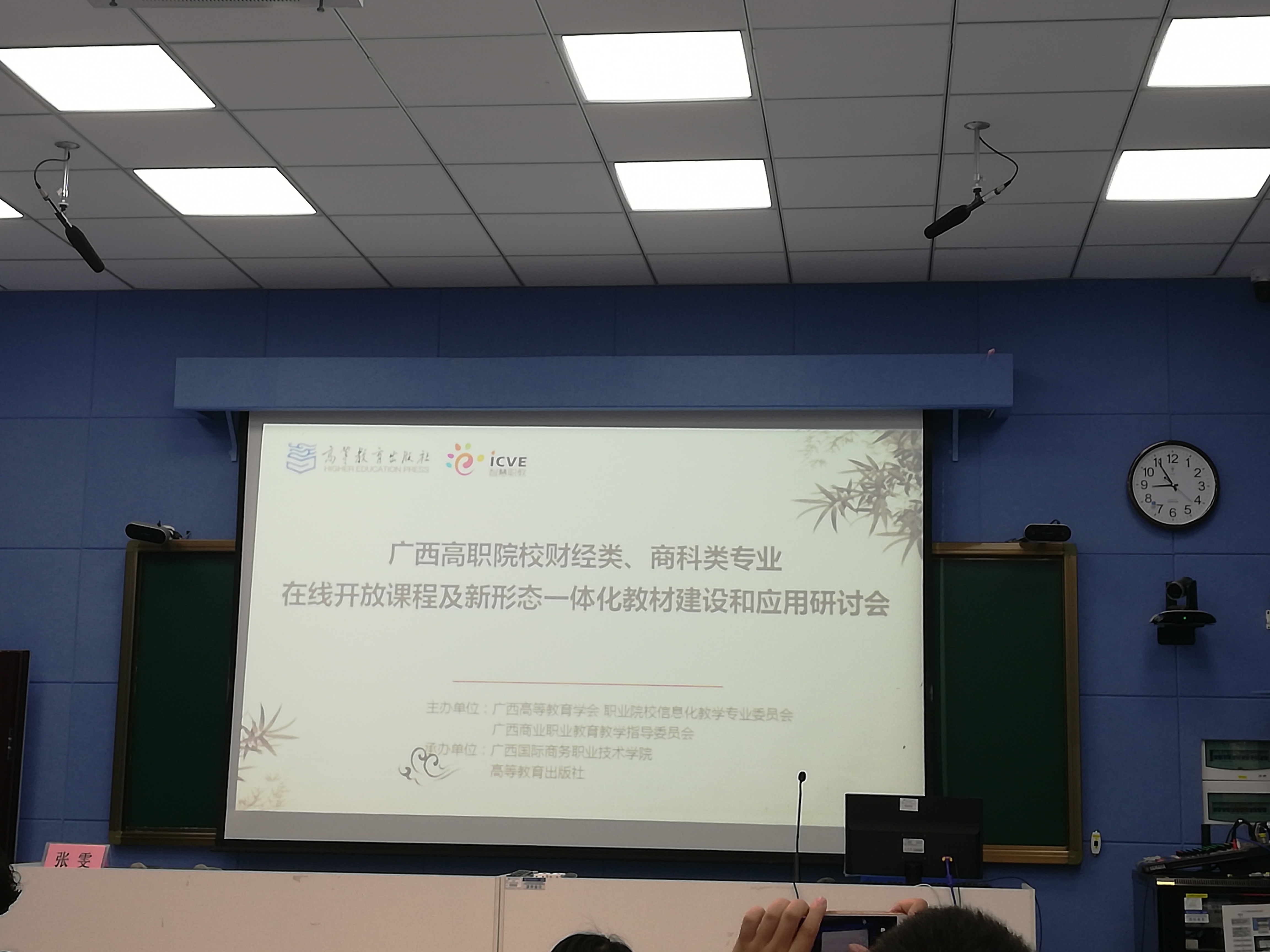 讯 吴丹、梁海明/文/图】为深入推动习近平新时代中国特色社会主义思想进教材、进课堂、进头脑、落实《教育部办公厅关于开展2018年国家精品在线开放课程认定工作的通知》(教高厅函【2018】44号)、《高等职业教育创新发展行动计划(2015-2018年)》等文件精神,打造广西壮族自治区高端性、专业性、引领性的在线开放课程及新形态一体化教材建设与应用的交流研讨平台,2018年11月10日,我系姚红、张超、梁海明等三位老师参加了在广西国际商务职业技术学院召开的在线开放课程及新形态一体化教材建设与应用研讨会,本次会议主要围绕国家级、省级专业教学资源库及在线开放课程建设与应用、信息技术与教育教学的深度融合以及新形态教材与在线开放课程一体化建设、出版等内容进行了研讨,同时也加强了全区各高职院校之间的沟通交流。