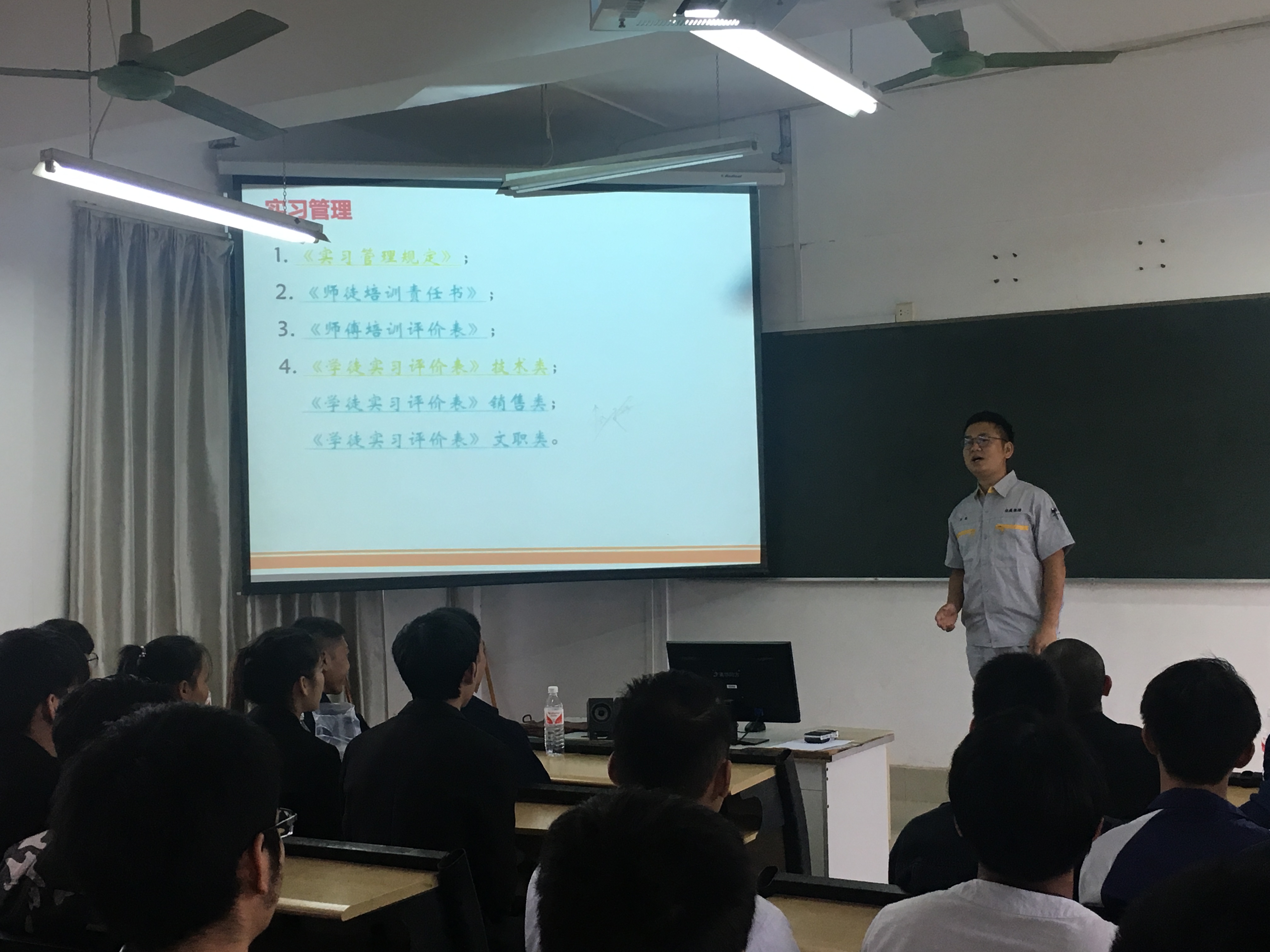 广西业盛投资集团有限公司是小松产品和山推产品的唯一代理商,主要代理销售和售后服务业务。党军总助给学生介绍了公司的企业文化、培养模式、晋升和实习相关内容,接下来由往届的学生分享经验和感受,引起了学生的共鸣。宣讲会结束后,先后有30多名学生提交了面试简历,最后20名学生入选了第十届“小松&山推班”,他们将在下学期专门进行校企合作共同教学的订单班课程。