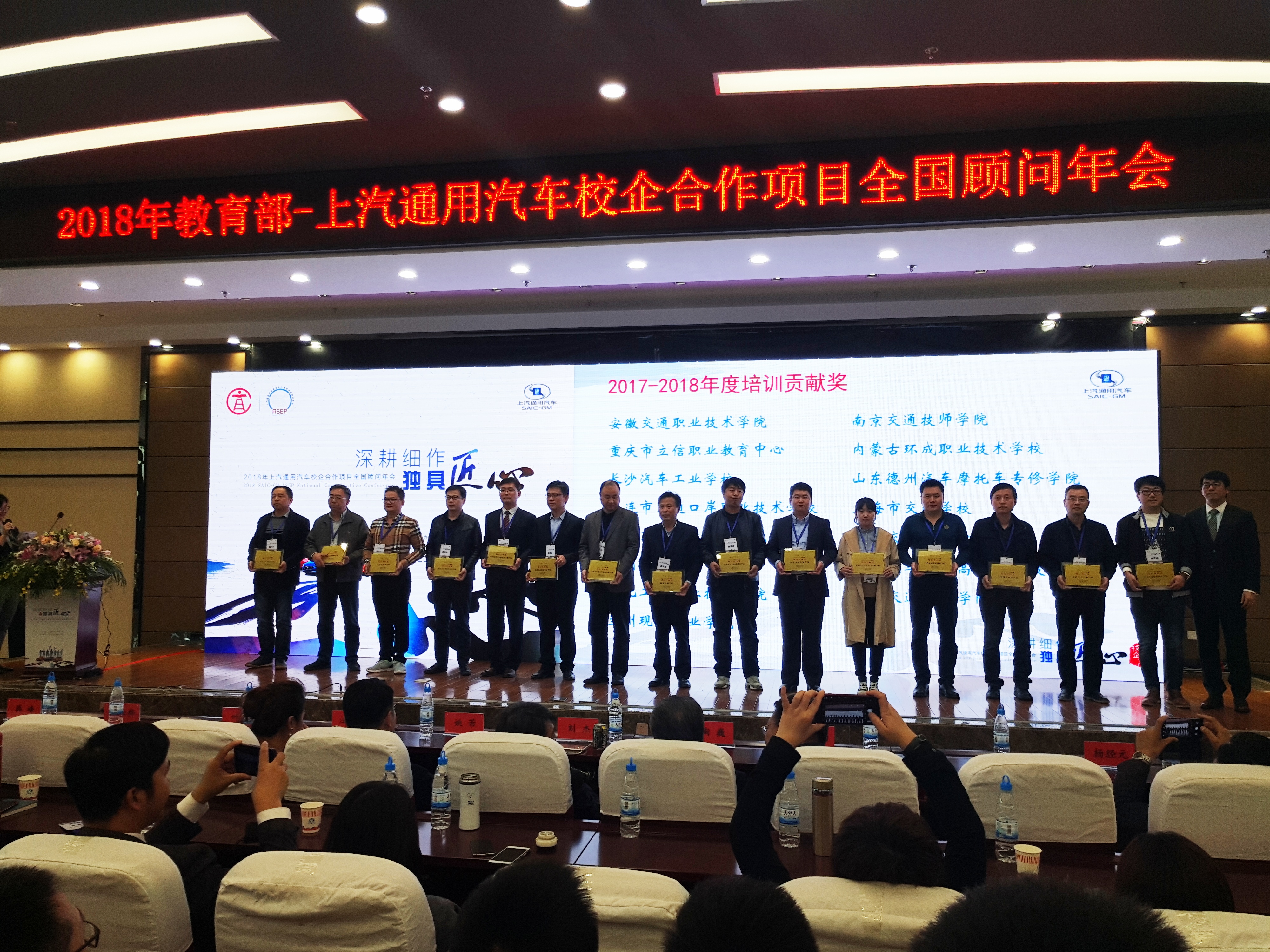 本次年会以“深耕细作、独具匠心”为主题,国家教育部的领导和来自行业的专家们向参会嘉宾们分享了国内职业教育、汽车维修行业的发展现状和趋势,以及上汽通用汽车校企合作项目未来发展方向等内容。年会还表彰了获2017—2018年度培训贡献奖的18家合作院校和18家优秀经销商合作伙伴,广西交通职业技术学院荣获培训贡献奖。