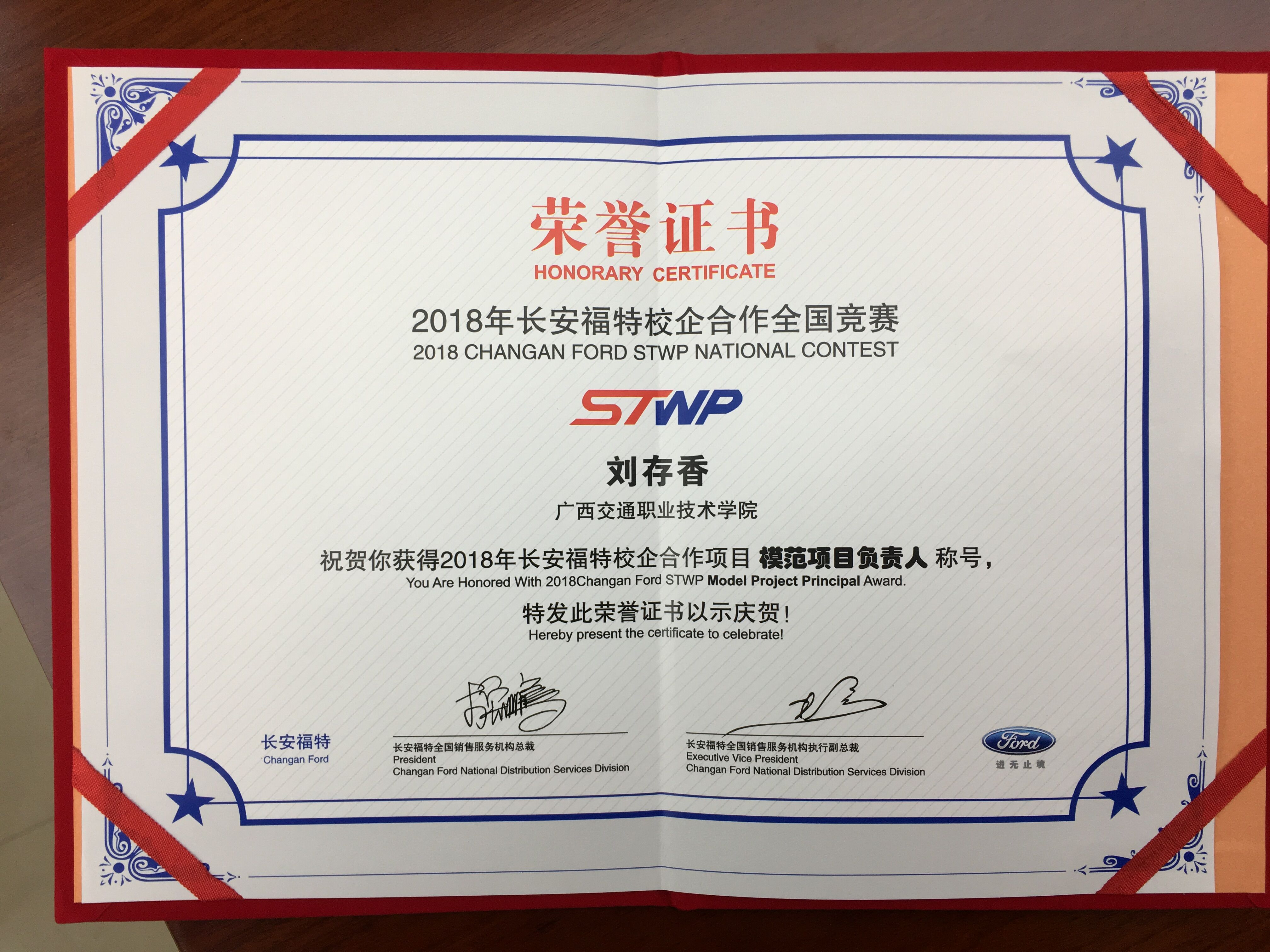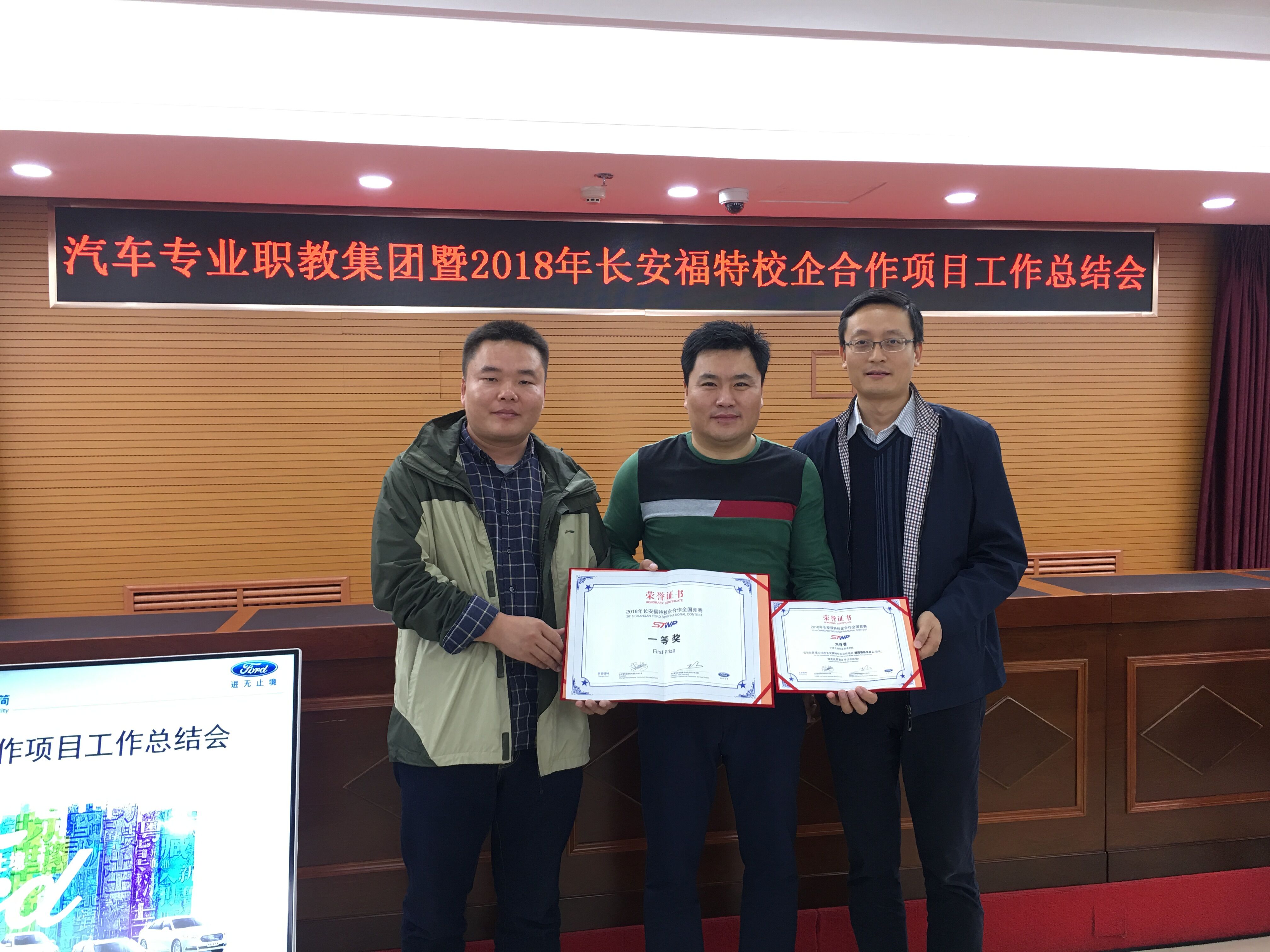 工作总结会旨在总结2018年校企合作工作,展望未来发展规划,表彰在“2018年长安福特校企合作全国竞赛”中取得优异成绩的院校和个人,激励校企双方不断进取。同时,会议进行了2018年校企合作工作总结和经验分享,为校企合作项目搭建一个良好的沟通交流平台,推动校企合作项目更好的发展。我院福特校企合作项目在2018年的竞赛组织中经过项目组的全体师生的努力,取得非常优异的成绩,从而获得2018年长安福特校企合作全国竞赛一等奖荣誉。