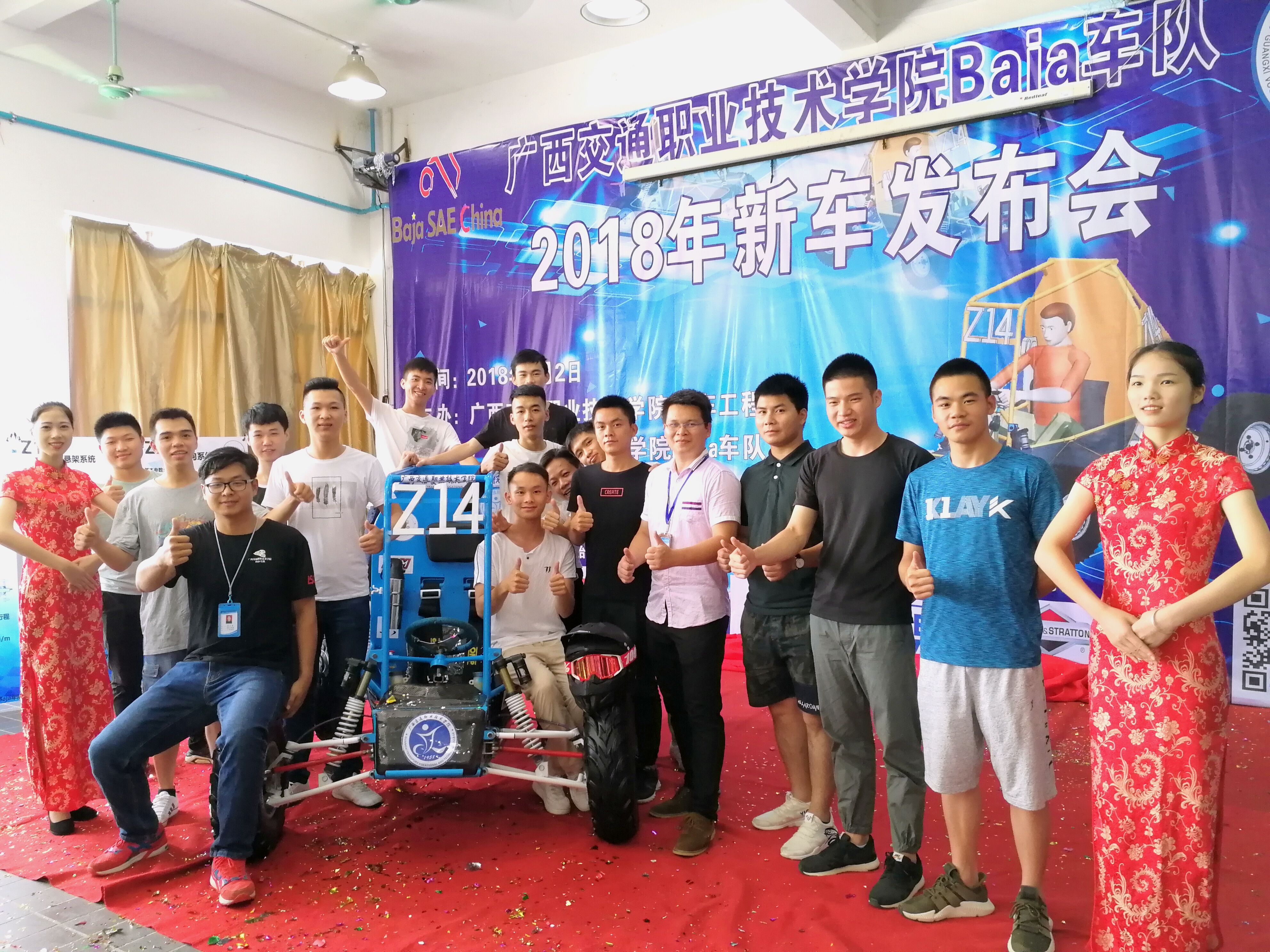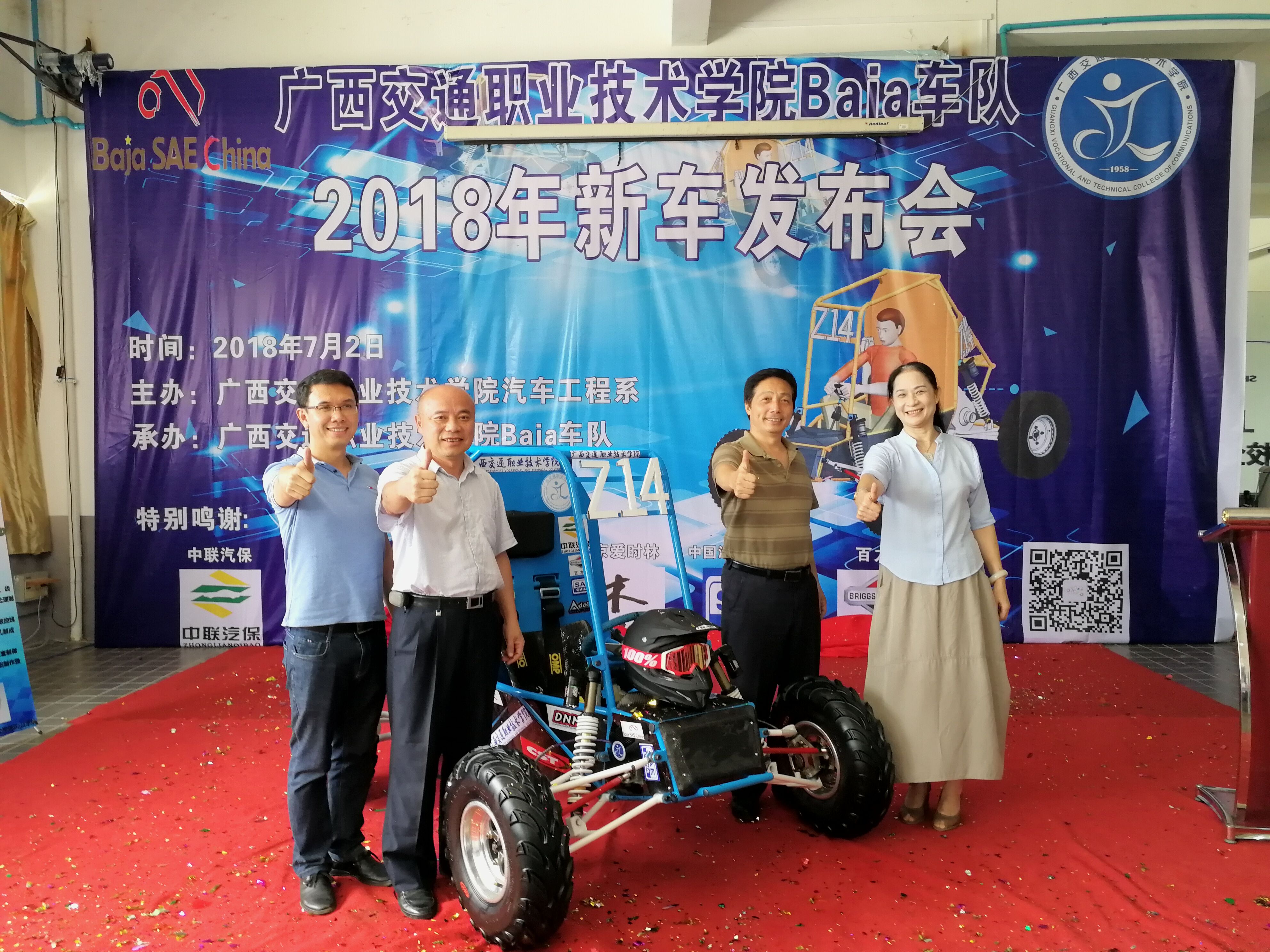 (汽车工程系讯 吴丹 梁海明/文 梁童健/图)2018年7月2日,广西交通职业技术学院Baja车队新车发布会仪式在四塘校区汽车楼隆重举行,学院黄琼念副院长、院长助理刘存香、国际交流处莫小农处长、学院办公室韦耀副主任、招就处副处长苏艳、团委张佺副书记等领导出席了本次活动,参与发布会的嘉宾还有广西理工职业技术学院Baja车队队员、学院各社团代表等。