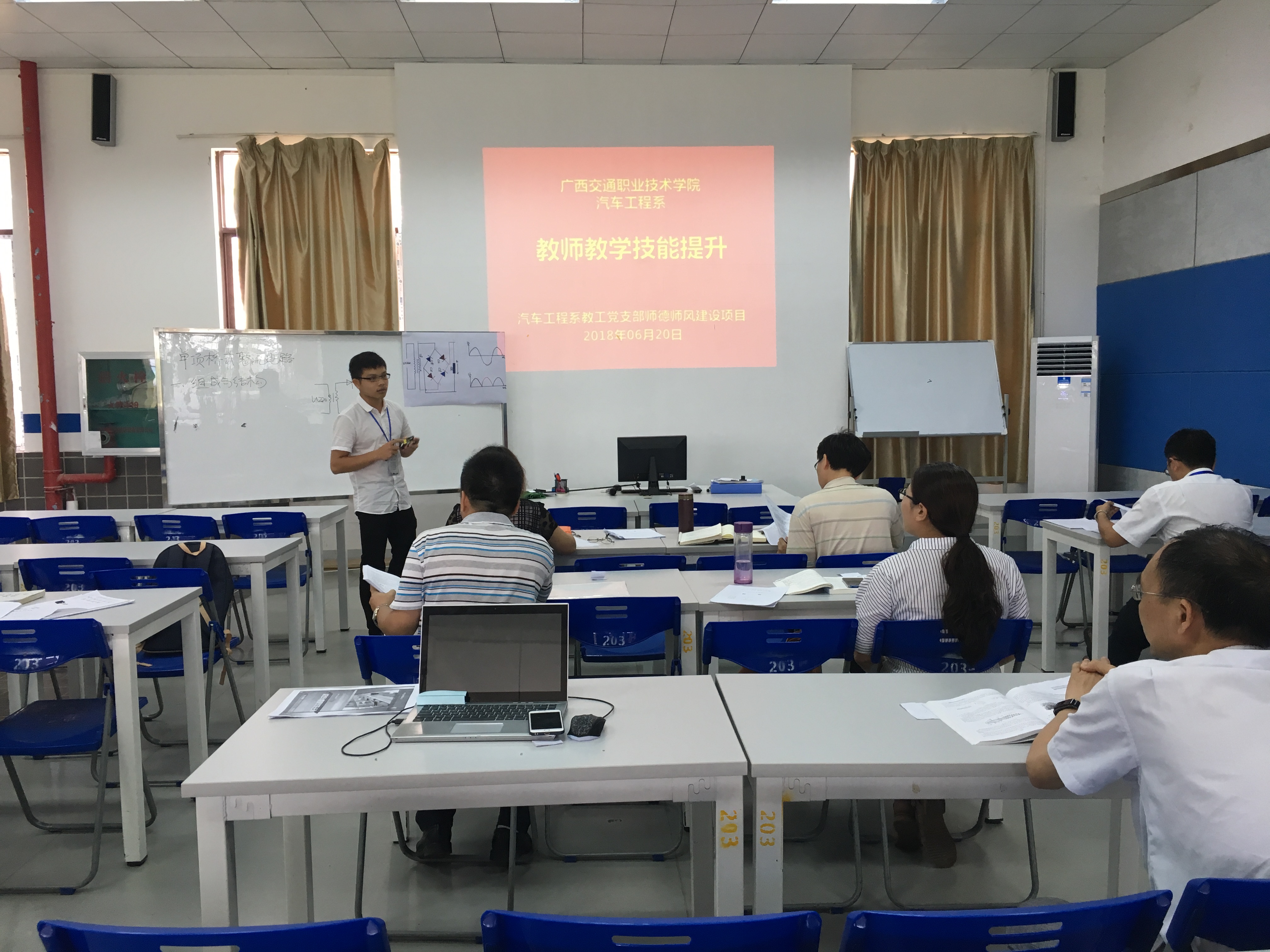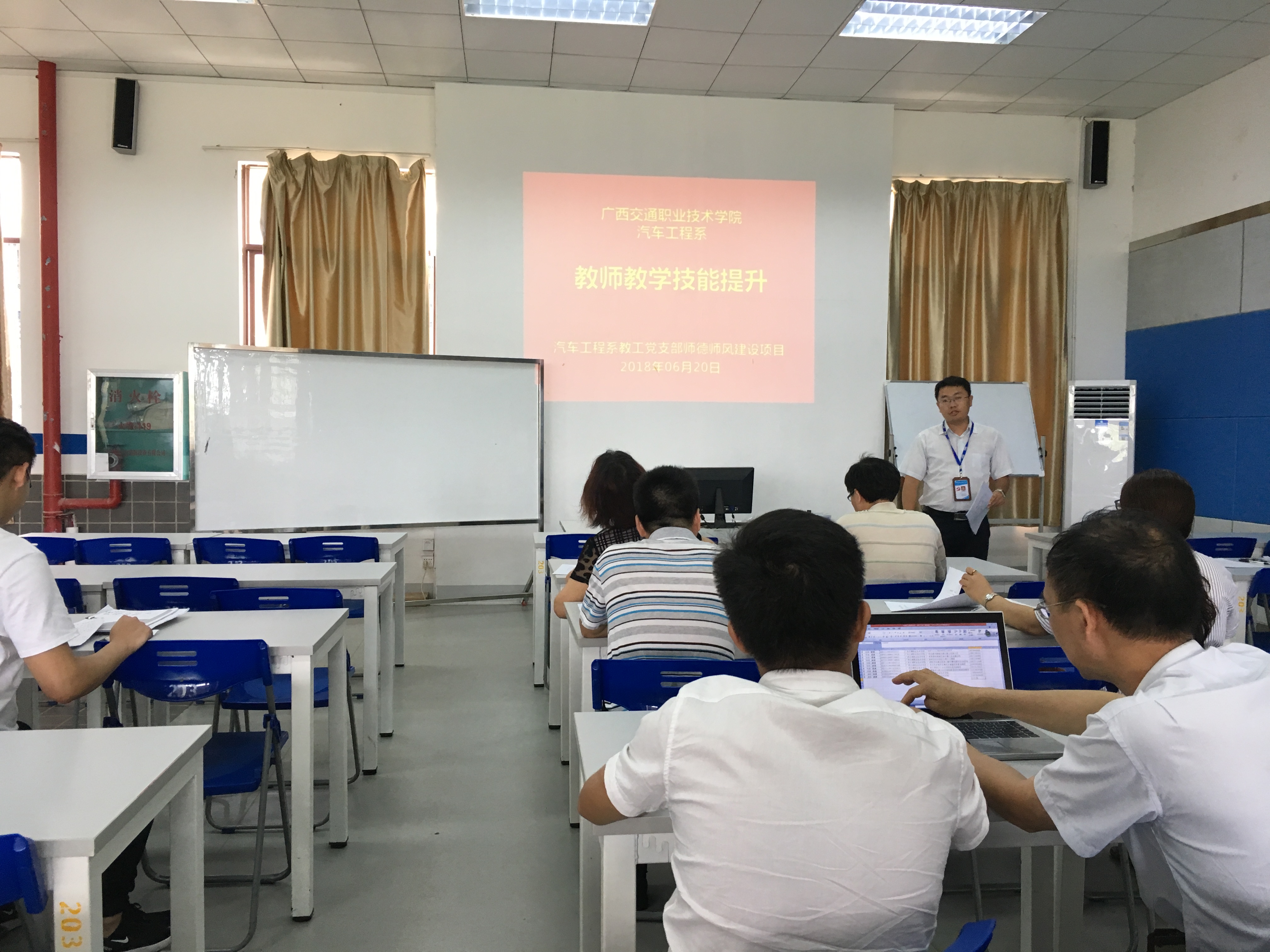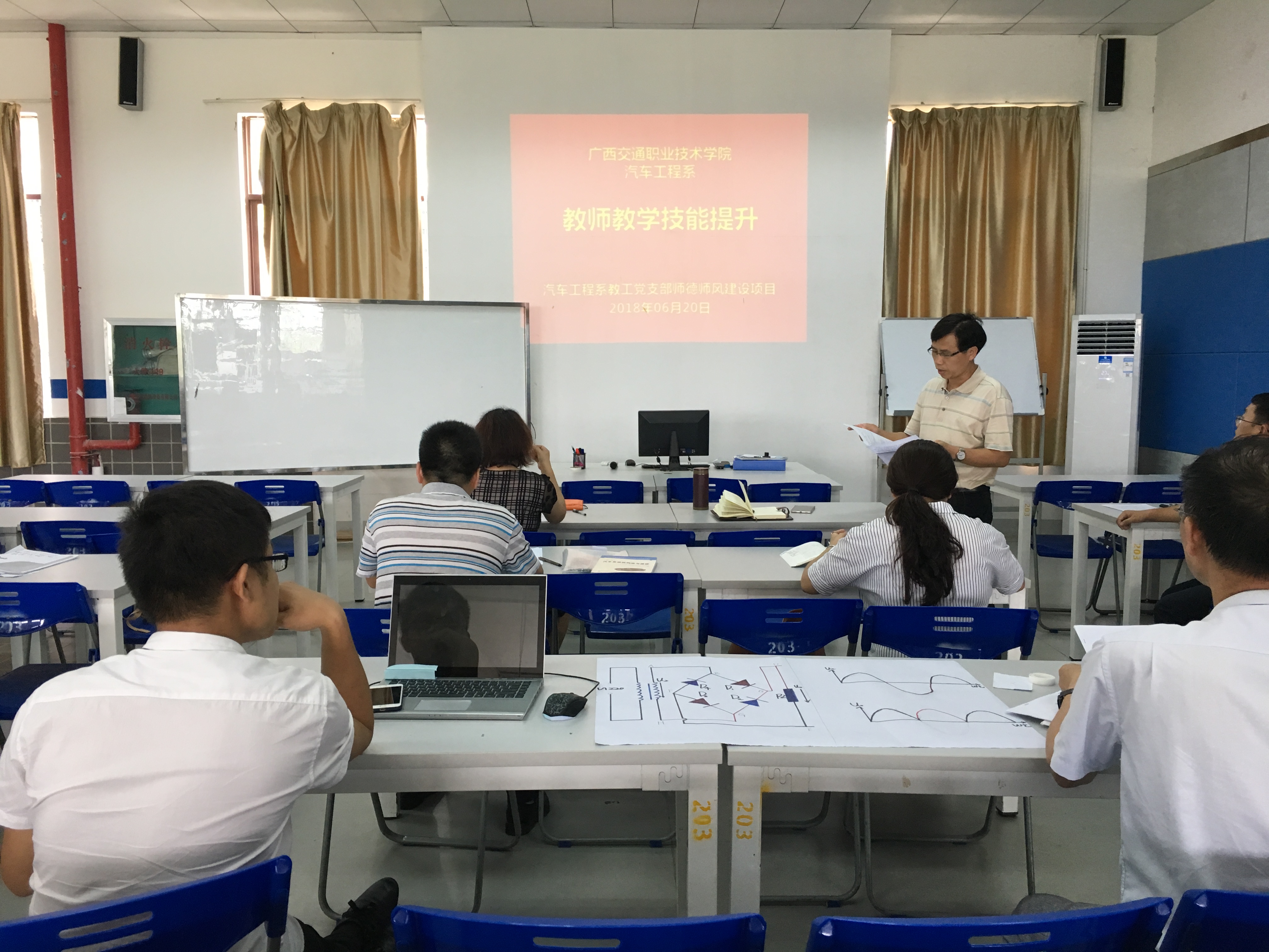 (汽车工程系 讯 吴丹、梁业灿 /文 梁业灿/ 图)为提高教师课堂教学技能,2018年6月20日,汽车工程系教工党支部开展师德师风建设之教师教学技能提升活动。