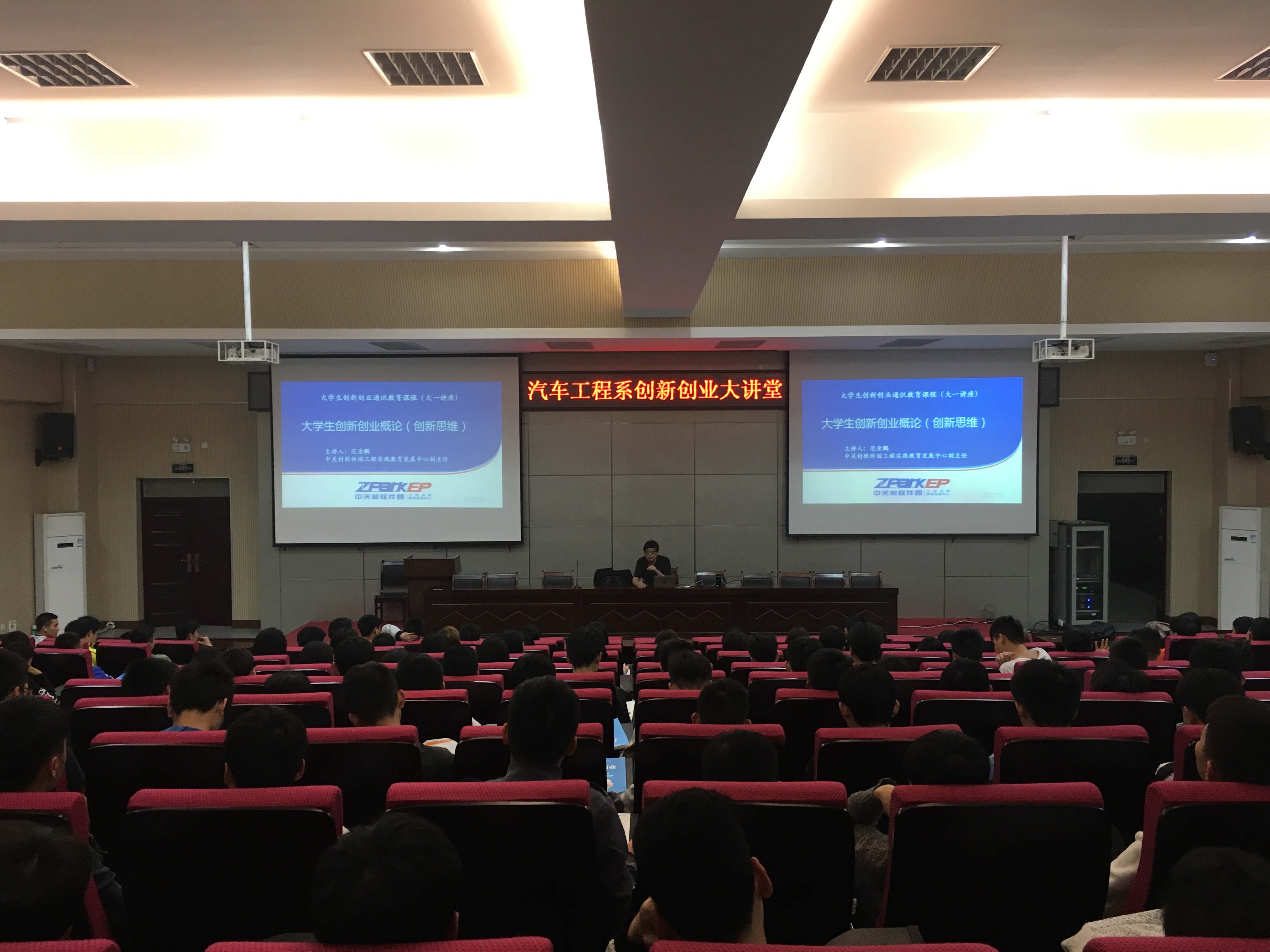 【汽车工程系 讯 梁业灿、王朵 /文 梁业灿/ 图】汽车工程系2018年创新创业大讲堂于3月12日在综合楼C1多功能厅开班,本期课程共5天,涵盖2017级、2016级学生以及在校班级班主任辅导员。现任中关村软件园工程实践中心副主任、华媒控股中教未来教育集团副总裁、北京德雅军民融合创新研究院院长一职的范金鹏老师担任此次课程讲座的主讲人。
