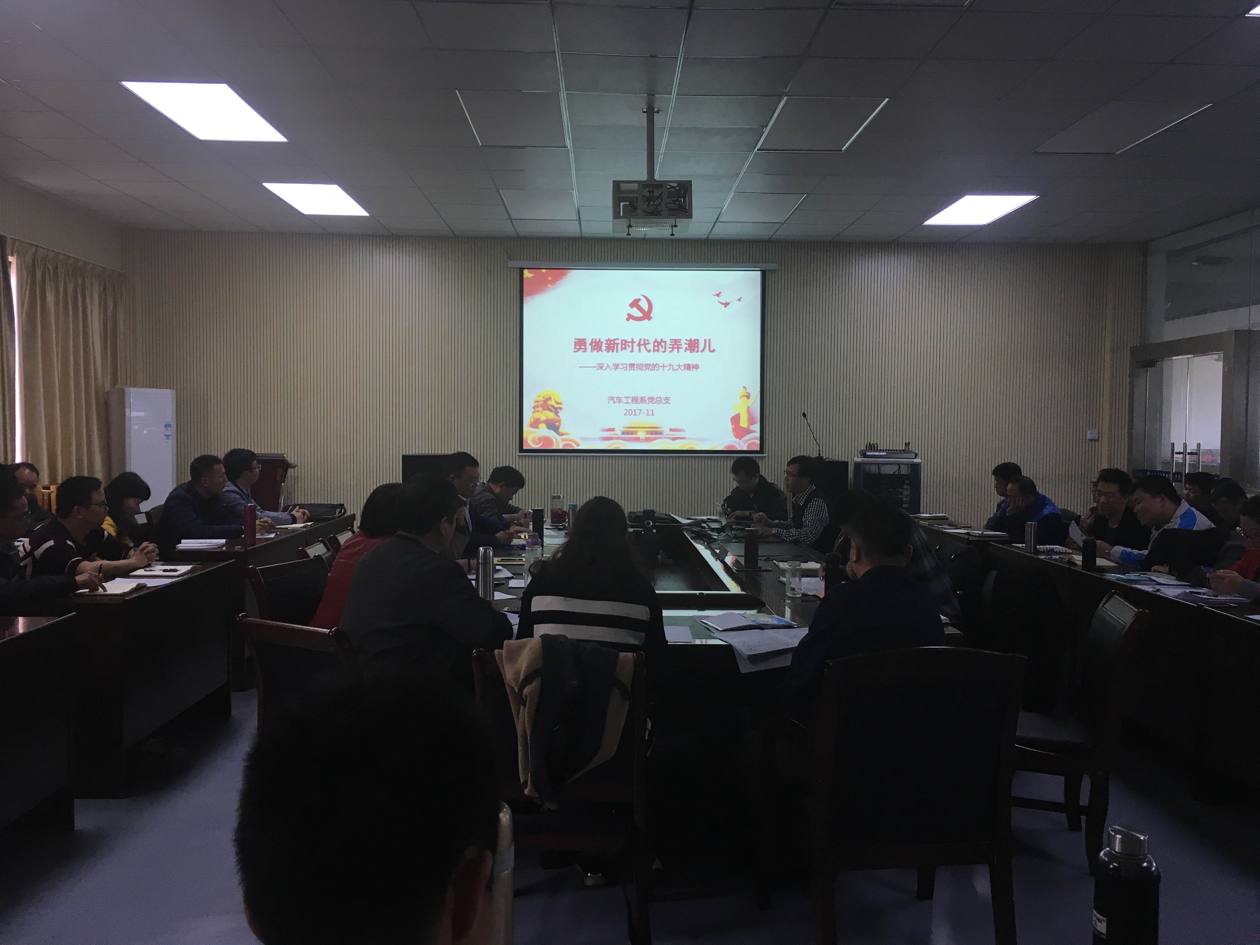 讯 吴丹 梁业灿/文 梁业灿/图】近日,汽车工程系党总支组织全系教师认真学习党的十九大精神,总支书记黄云奇做了专题报告。在这次报告会上,黄云奇书记从党的十九大的召开、主题及重要意义、中国特色社会主义进入新时代与新时代党的历史使命、我国社会主要矛盾的变化、实践新路径等方面,对党的十九大精神进行了系统、全面的解读。