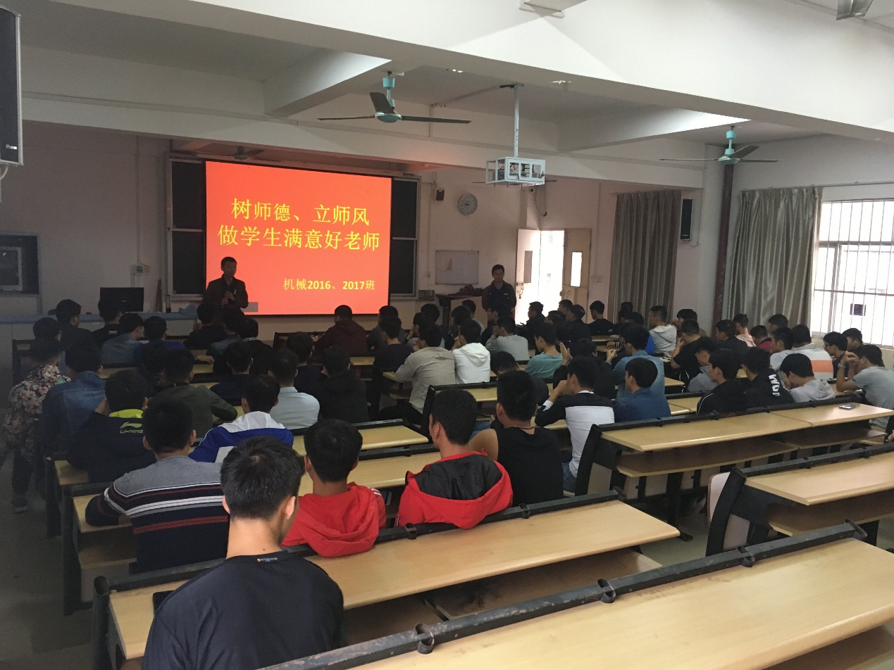 【汽车工程系 梁海明/文 梁业灿/图】2017年11月15日,汽车系工程机械运用技术专业在我院北区302教室举行了一场“树师德、立师风”师生座谈会,工程机械专业全体师生到场讨论,会议由梁海明老师主持。