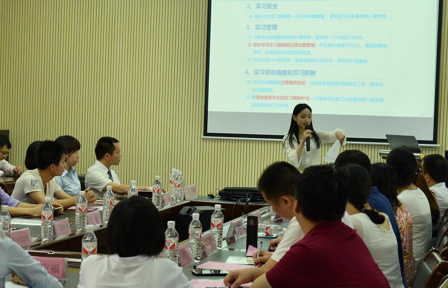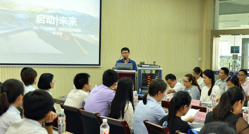 第二部分见面会由定向班讲师罗海英主持,出席本次招聘会见面会的有我校招就处何江霞处长以及汽车工程主任刘存香、就业干事覃晓娟及长安福特定向班讲师等。刘存香主任代表学校对长安福特大学冯盈女士、长安福特华南培训中心主管张燕杰及16家招聘单位来校招聘毕业生表示热烈欢迎,并为参会单位介绍了学校的基本情况以及校企合作相关事宜。会上由华南培训中心主管张燕杰对以往定班的实习管理中存在的问题与各经销商探讨,同时提出今后三方如何为提高企业人才的培养管理设想。最后由冯盈女士对本次招聘会的流程及注意事项进行解答。