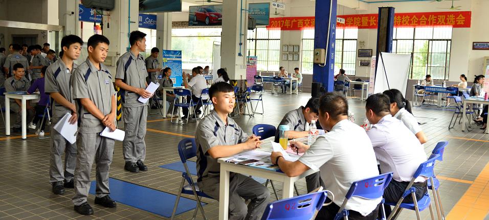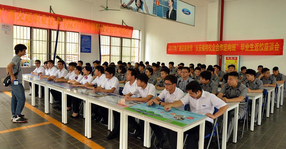 【汽车工程系讯 吴丹、罗杰斌/文 罗杰斌/图】2017年5月23日上午,长安福特校企合作双选会在我校汽车楼成功举办。双选会分三个部分进行,第一部分为2017年广西交院“长安福特校企合作优秀毕业生”返校座谈会;第二部分为学校、长安福特大学及招聘经销商企业的三方见面会;第三部分为现场招聘会。