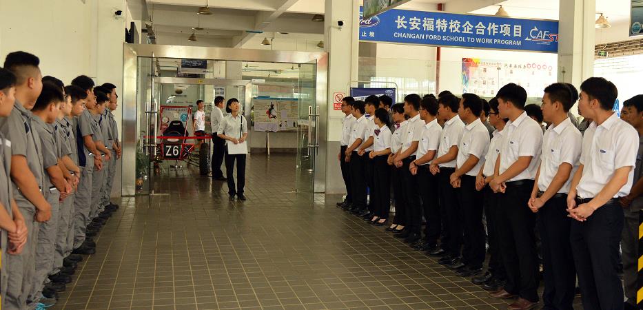 第三部为现场招聘会,首先由各经销商企业对同学们进行简短的自我介绍。下午13:30分正式开始现场招聘。长安福维修技术、营销及钣金等三个方向兴趣班的69名同学统一着装,彰显对长安福特的魅力。现场签订《实习协议书》的同学共有61人,其中签约为“定向班学生”46人,“非定向班”同学15人。