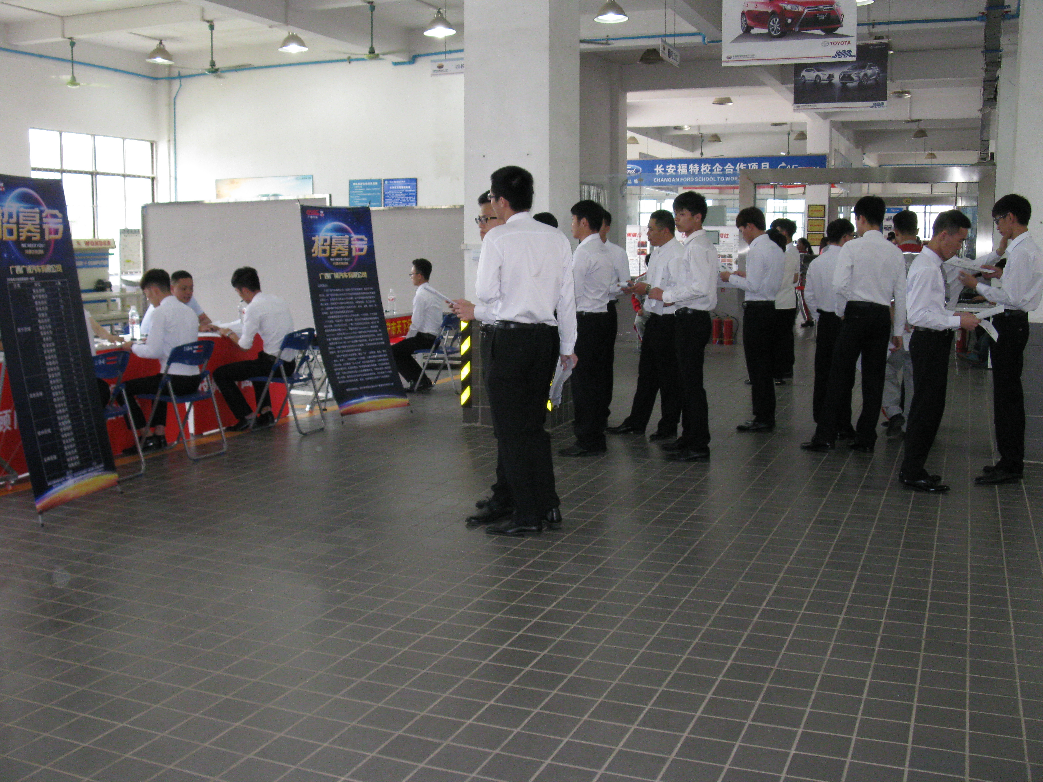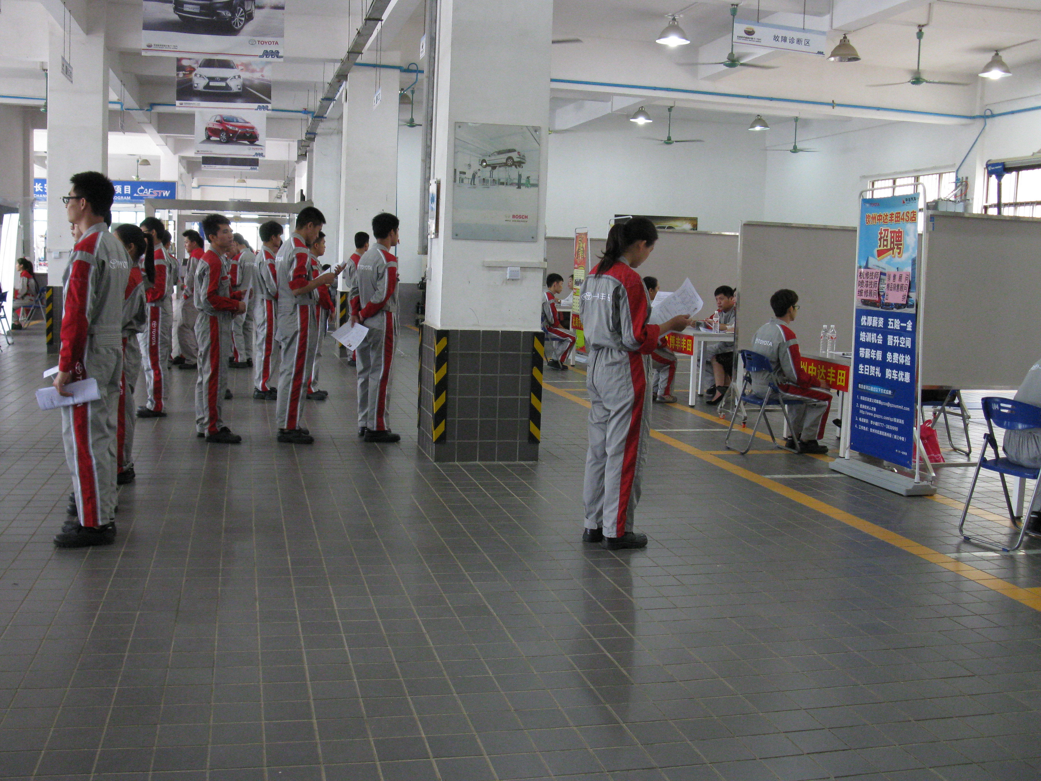 【汽车工程系 讯 林松/文/图】2017年5月19日,2017年T-TEP学校丰田汽车服务网点人才招聘会在我院四塘校区隆重举行。 本次招聘会共有14家丰田汽车经销店到我院招贤纳士,涵盖了一汽丰田、广汽丰田、雷克萨斯共三个品牌。招聘会为学院汽车类相关专业毕业生提供了维修、销售顾问、服务接待、钣金、喷漆等100来个就业岗位。现场签约达80余人,本届2015级丰田班人数37人均已全部与经销店签约。