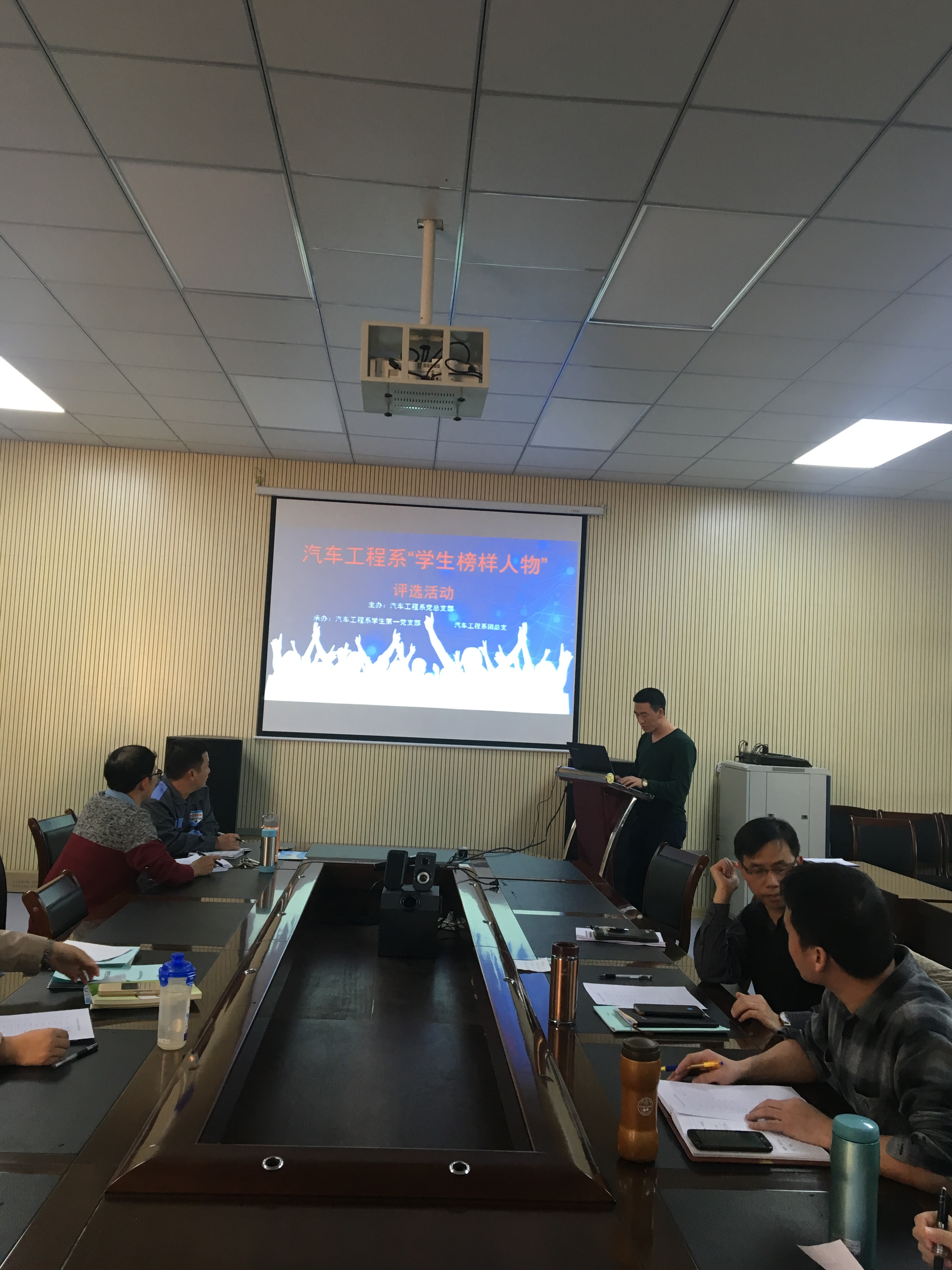 (汽车工程系 吴丹、罗海英/文 林松/图)我系深入开展“两学一做”学习实践活动,按照既定计划进行“讲道德、有品行”专题的系列活动,为加强和改进学生思想道德教育工作,宣传和树立汽车工程系学子的良好形象,用先进人物的事迹感动学生,培养学生良好的思想道德品质,营造积极向上的校园氛围,由我系“两学一做”活动“讲道德、有品行”模块工作小组联合系团总支举办了汽车工程系“学生榜样人物”评选活动。